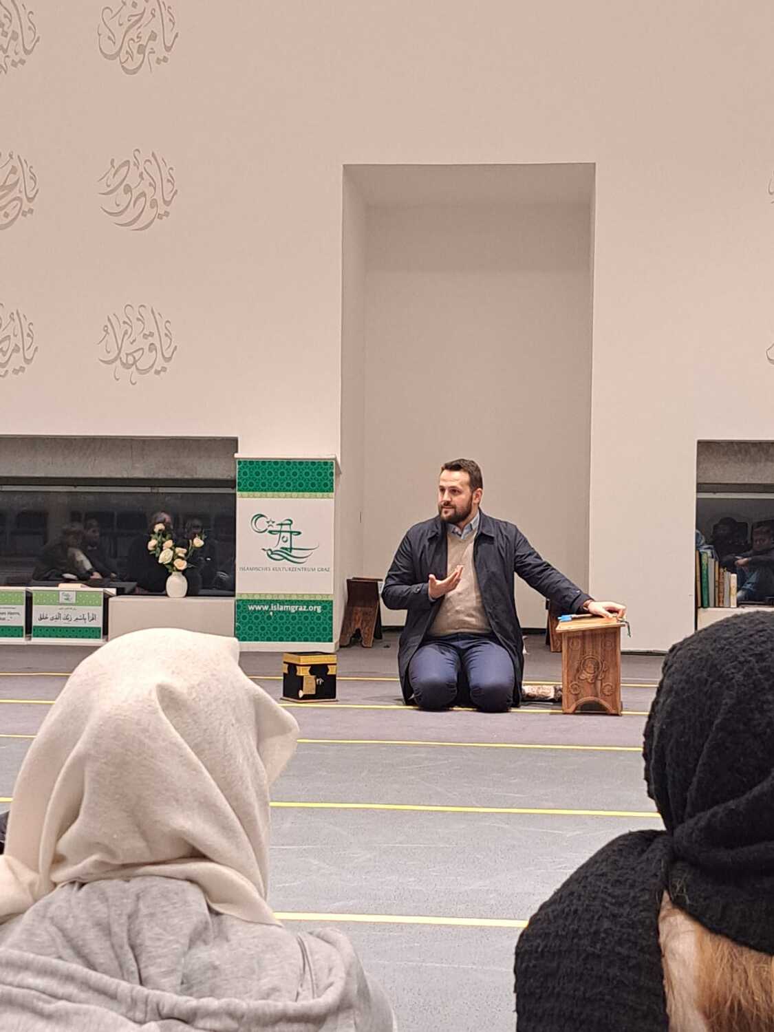Auch 2024 öffnete das Islamische Kulturzentrum seine Tore, um Firmlinge aus verschiedenen Grazer Pfarren willkommen zu heißen. Dieser Besuch ist mittlerweile optionaler Bestandteil der Firmvorbereitung und stellt eine wichtige Möglichkeit dar, mit Menschen einer anderen Religionsgemeinschaft in Berührung zu kommen und vor allem in Dialog zu treten. Für junge Menschen ist dies oft der erste Besuch in der Moschee und eine seltene Gelegenheit Fragen aller Art zu stellen, die vielleicht schon länger im Kopf herumgeistern. Imam Fikret Fazlic gab gewohnt offen und herzlich Einblick in den Islam und das Leben der Muslime in Österreich.