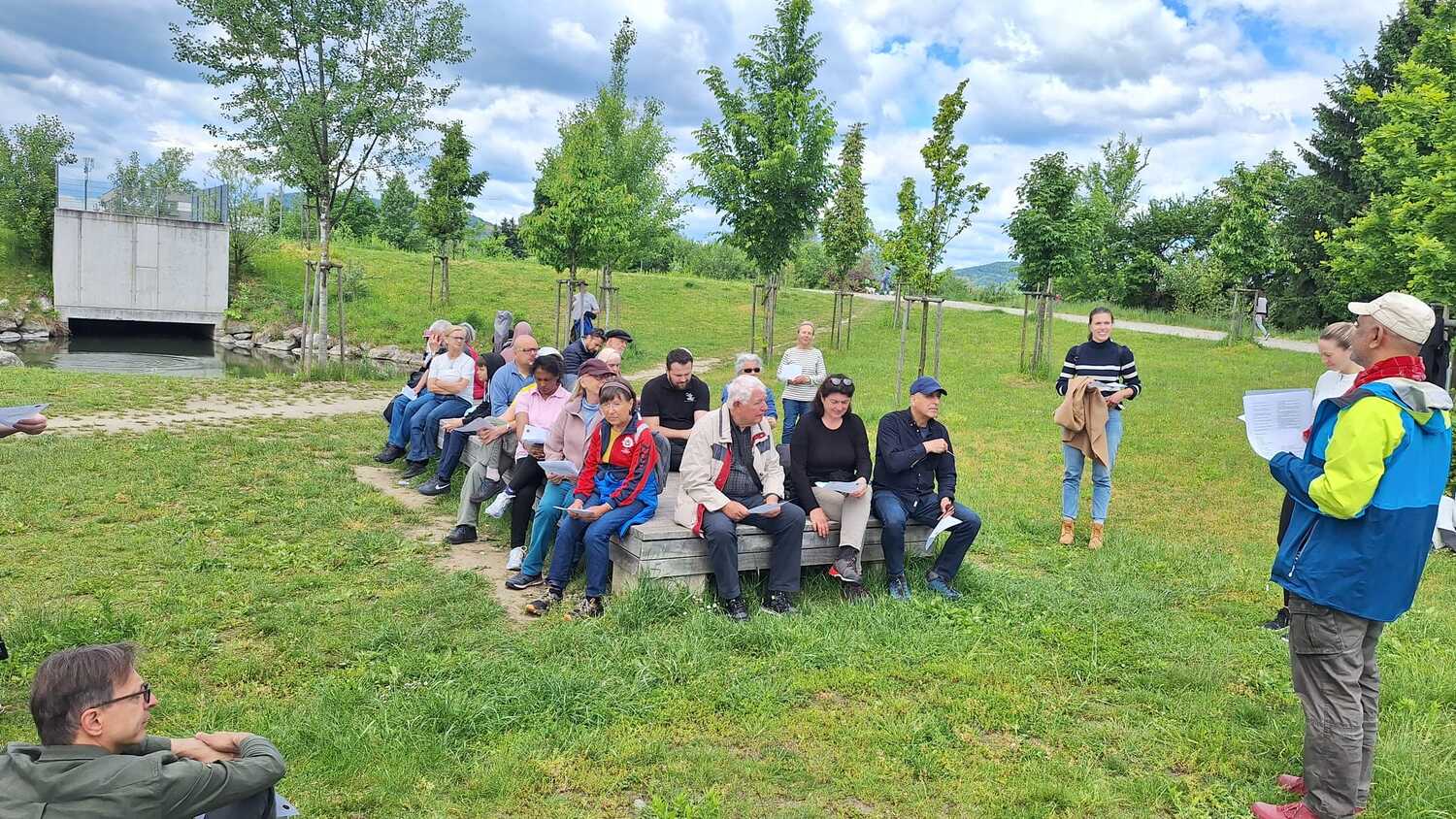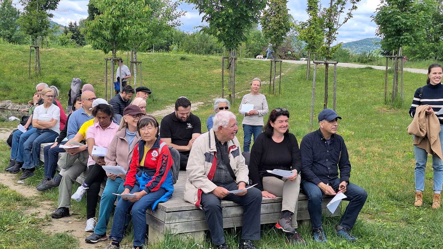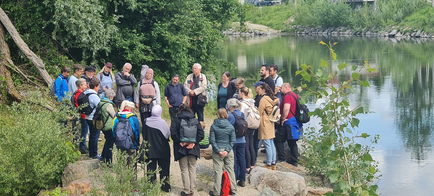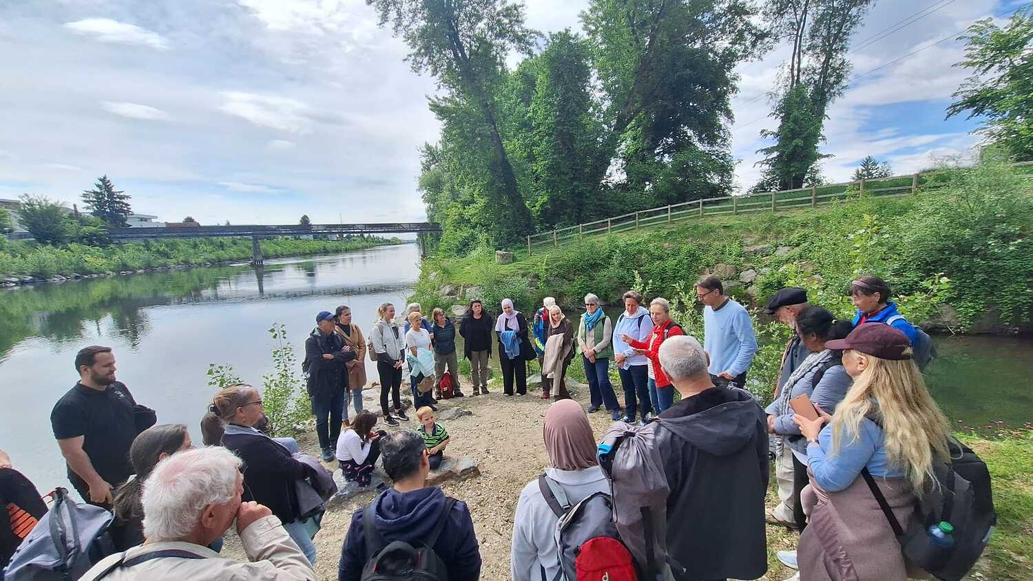 Am 17. Mai und damit erstmals im Frühling trafen sich rund 40 Personen zur diesjährigen interreligiösen Wanderung. Eine multireligiöse Gruppe bestehend aus Angehörigen von vier unterschiedlichen Religionsgemeinschaften spazierte nach dem Treffpunkt am Generationenpark gemeinsam entlang der Mur hinauf zum Murkraftwerk. Begleitet von einprägsamen religiösen Impulsen zum Thema „Schöpfung & Natur“ gab es viel Gelegenheit miteinander ins Gespräch zu kommen.