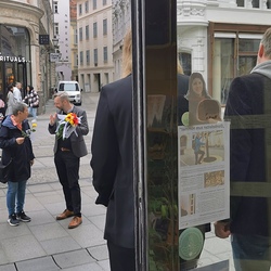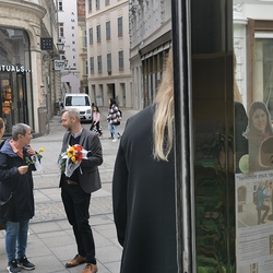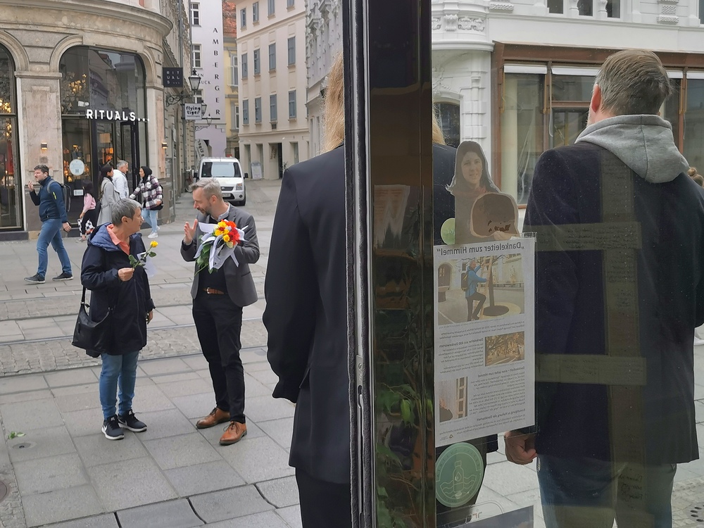 „Diese Aktion entstand auf Initiative des Fonds und findet heuer bereits zum 15. Mal statt“, sagt Schwarzenegger. So wie hier beim Kircheneck wurden mehr als 2.000 Rosen an die Menschen in allen steirischen AMS-Stellen und deren Mitarbeitenden verteilt.