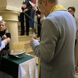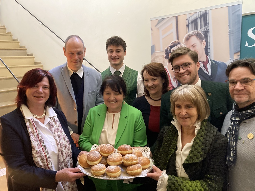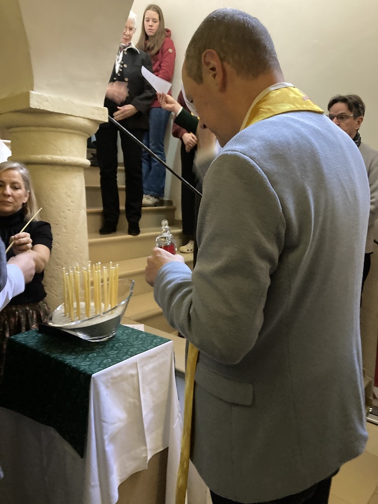 Stadtpfarrpropst Ewald Pristavec nahm um 11 Uhr die traditionelle Kerzensegnung vor und sprach den Blasiussegen, danach gab es einen regen Austausch bei handgemachten Lichtmesskrapfen von Brotexpertin Eva Maria Lipp und steirischen Getränken. Als Lichtmessgeiger spielte die Postmusik Graz auf.