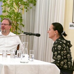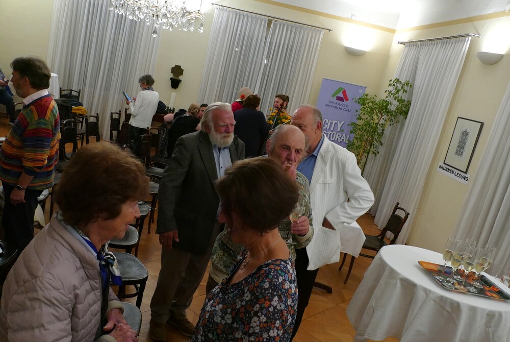 Die Brunnenlesung bot einen bereichernden Abend, der Literatur und Musik verband. Die Stimmung war ausgezeichnet und die Begegnungen im Anschluss bei Brötchen, Sekt und Getränken wurden gerne und ausgiebig wahrgenommen.