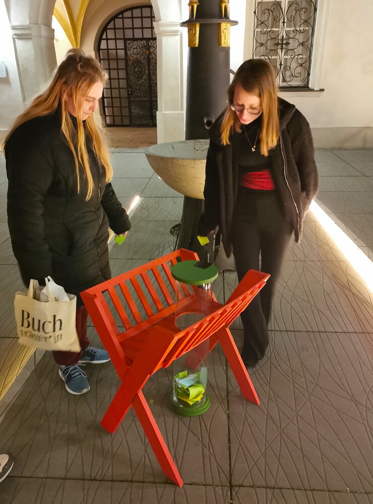 Von 29. November 2025 bis 6. Jänner 2026 wurden 346 Wünsche ans Christkind in die "Rote Krippe" im Brunnenhof der Grazer Stadtpfarre gelegt.