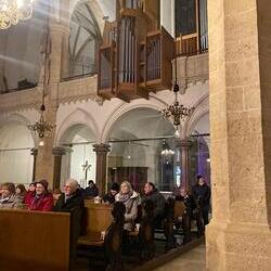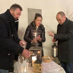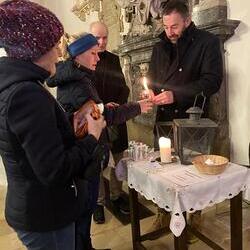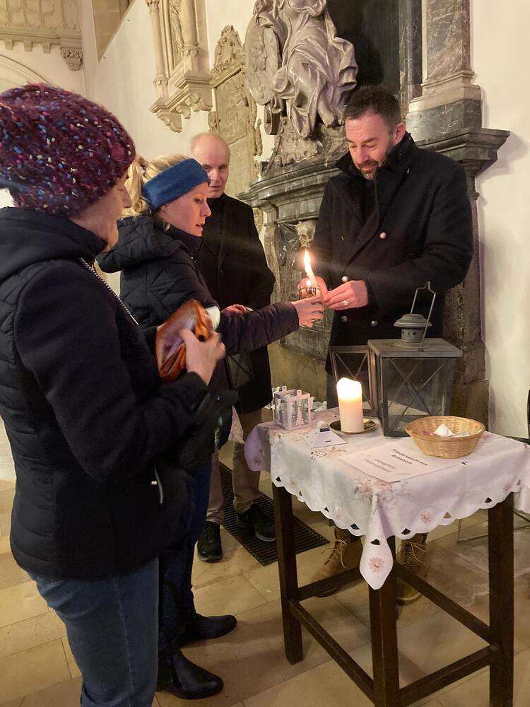 Am 23.12. lud die Stadtkirche ein, das Friedenslicht in der Stadtpfarrkirche abzuholen. Zahlreiche Menschen kamen vorbei, um das Licht für sich und andere mitzunehmen oder um inmitten der vorweihnachtlichen Hektik einen Moment innezuhalten und die stimmungsvolle adventliche Cello-Musik von Olena Mishchii zu genießen.
