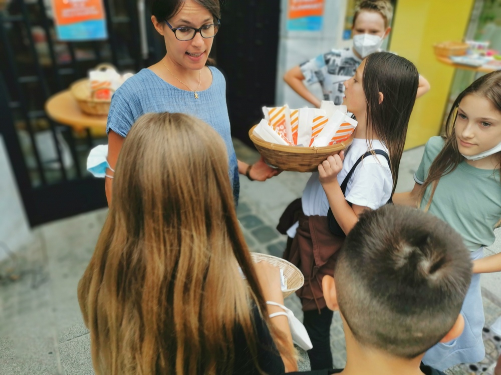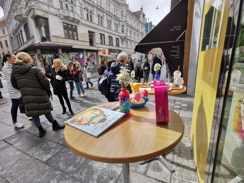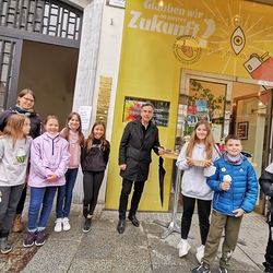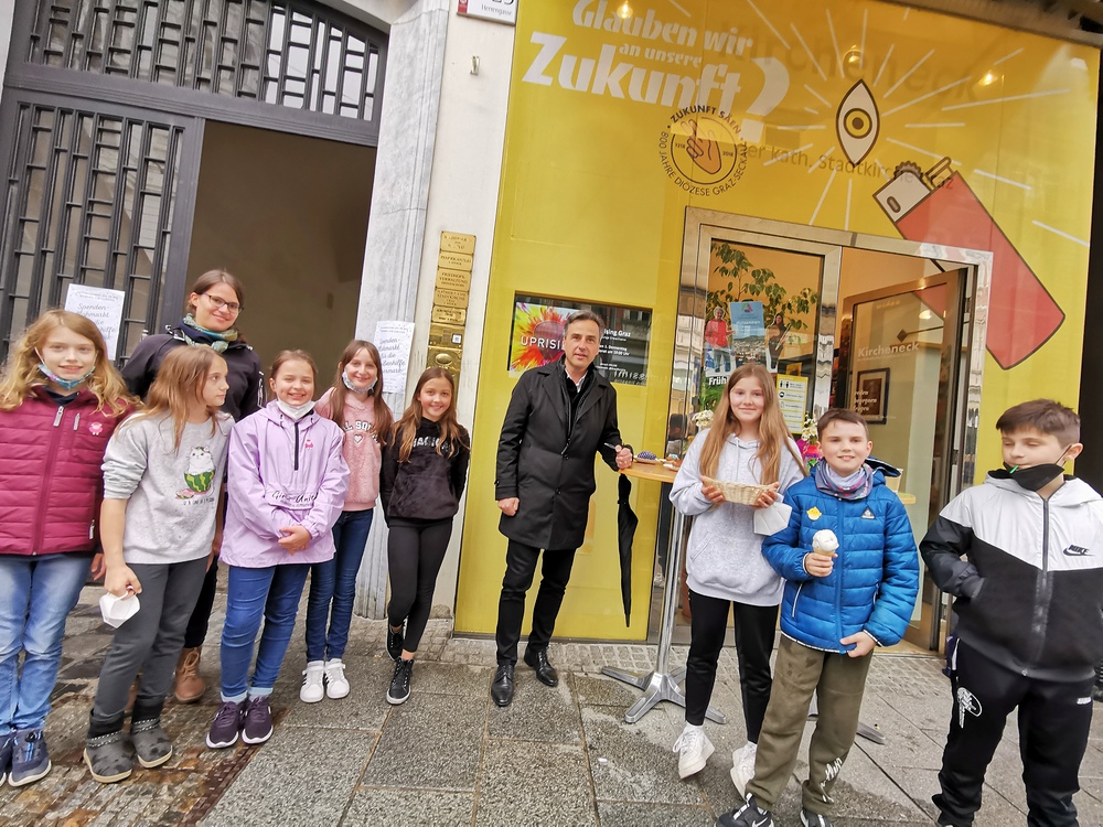 Mit großer Leidenschaft sprachen sie die Vorbeigehenden an, boten selbstgemachtes Popcorn an und ließen sich auch von Ablehnungen und blödem Gerede nicht entmutigen. An den zwei Nachmittagen haben sie insgesamt 2.500 € eingenommen und der Familienhilfe Steiermark 1.500 € und der Jugendnotschlafstelle Schlupfhaus 1.000 € übergeben.