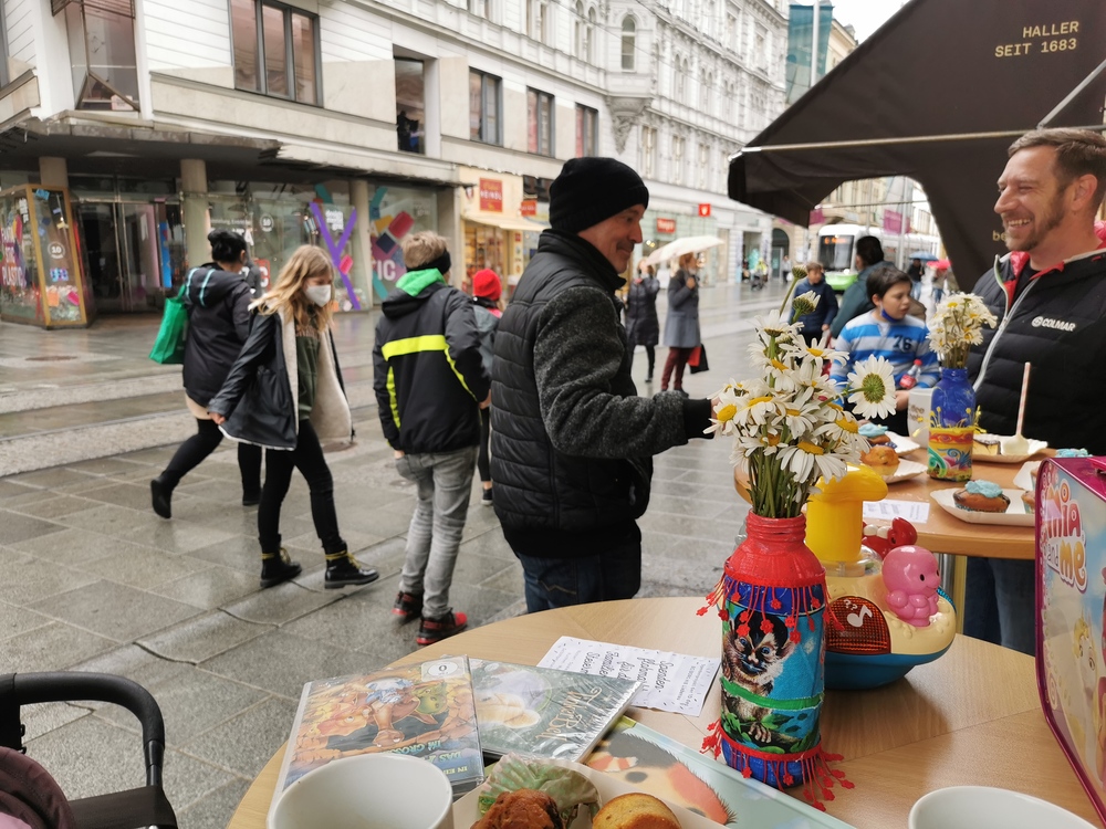 Am 7. Mai und 1. Juli 2021 veranstalteten Schülerinnen und Schüler der HIB Liebenau mit Lehrerin Anna Kirchmaier einen Spendenflohmarkt in der Herrengasse beim Kircheneck für zwei caritative Projekte auf Wunsch und Idee der Schüler. Dafür backten sie Mehlspeisen, bastelten Lesezeichen und sortierten alte Bücher und Spielzeug.