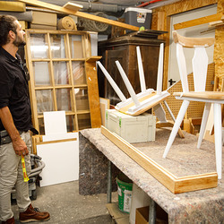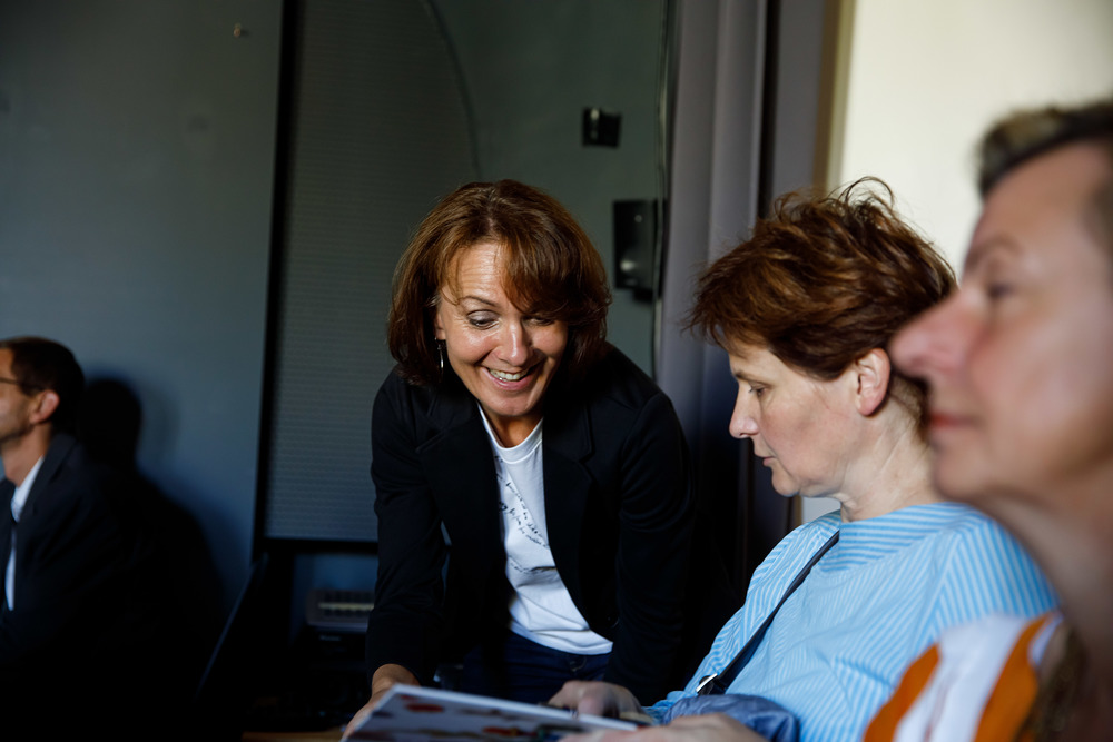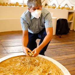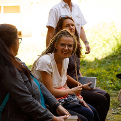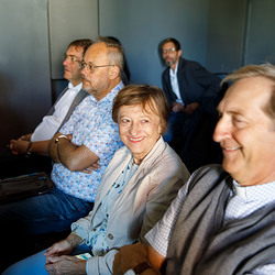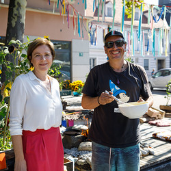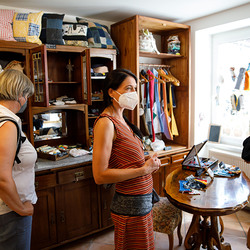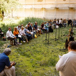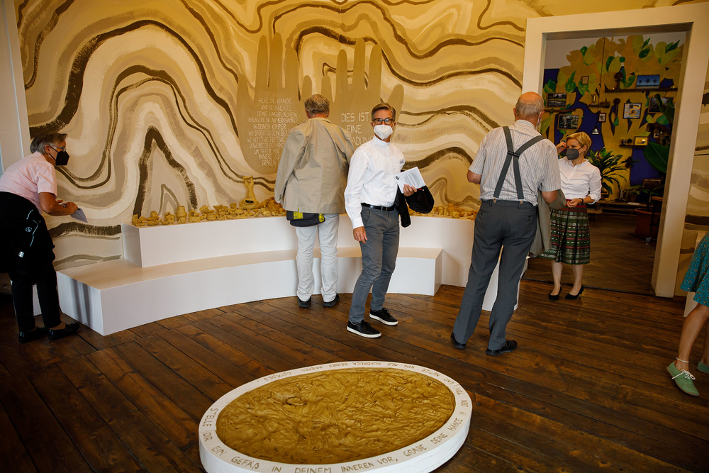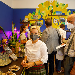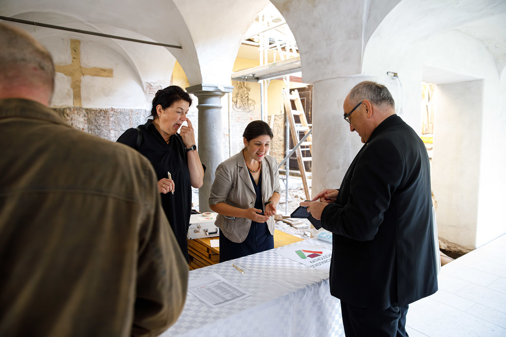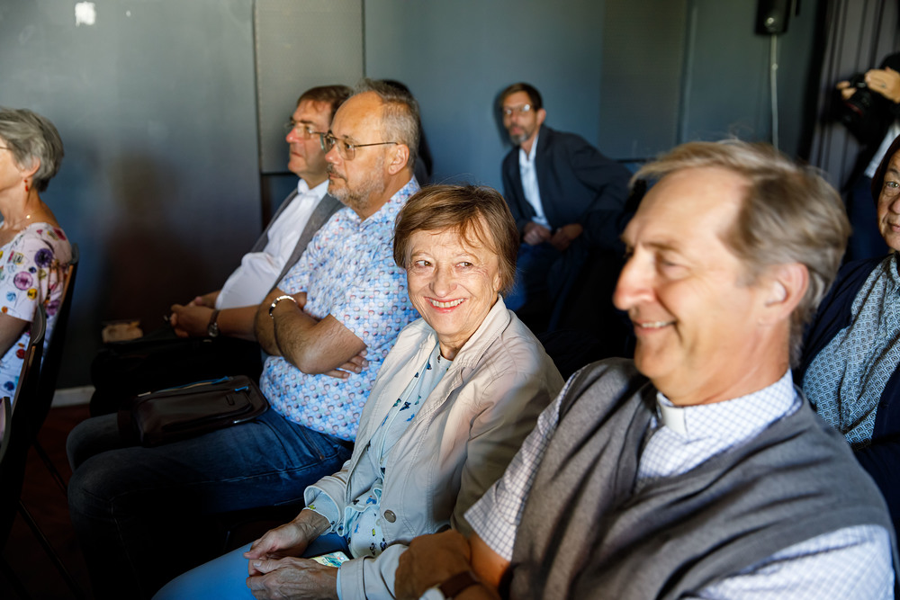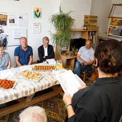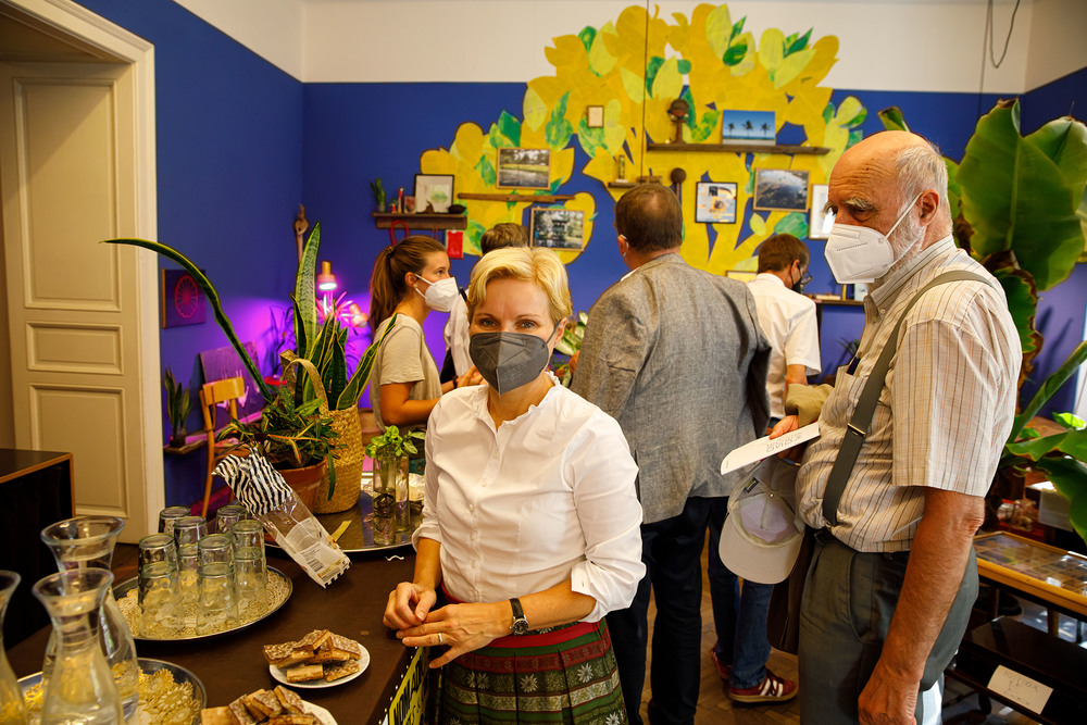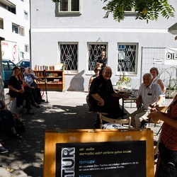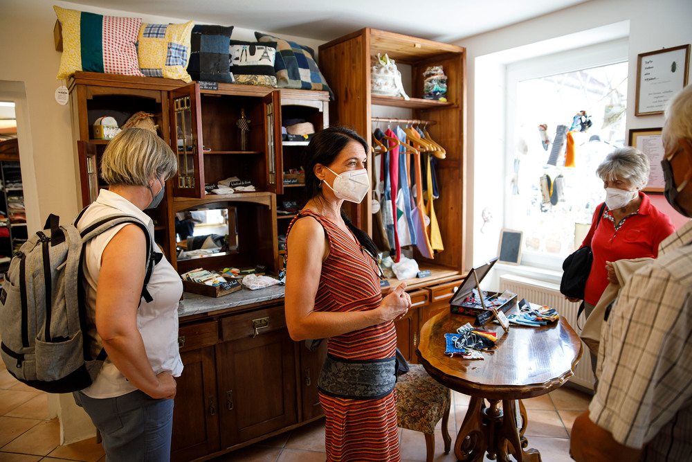 Der Weg führte die MitGEHenden dann hinaus an drei Orte: zur erwähnten „Schule des WIR“, einem Kunstprojekt des Grazer Kulturjahres, zum Verein „Die Manufaktur“, einem Beschäftigungs- und Upcyclingprojekt, sowie zum „Büro der Nachbarschaften“ und ihren interreligiösen Bemühungen. Ein Teil der Gruppe besuchte schließlich das „Kircheneck“ als citypastoralen Ort. Der Schriftsteller Anton Christian Glatz bezeichnete das Kircheneck treffend als Ort mit Schanierfunktion („Zwischenort“) zwischen Sakralem und Profanen, wo auch Andersdenkende (wie auch er als Atheist) ihren Platz haben und niveauvoller Austausch, aber auch positive Streitgespräche möglich sind.