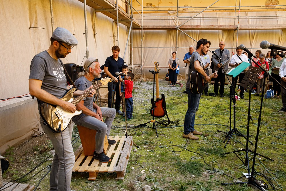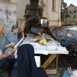 Der Abschluss des BeGEHgnungstages war wieder im KULTUM angesetzt: mit ausreichend Begegnungsmöglichkeit im „Paradiesgarten“ bei strahend schönem Wetter, Pschoadbinkerl und Musik der „Bischöflichen Hauskapelle“.