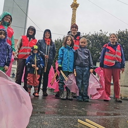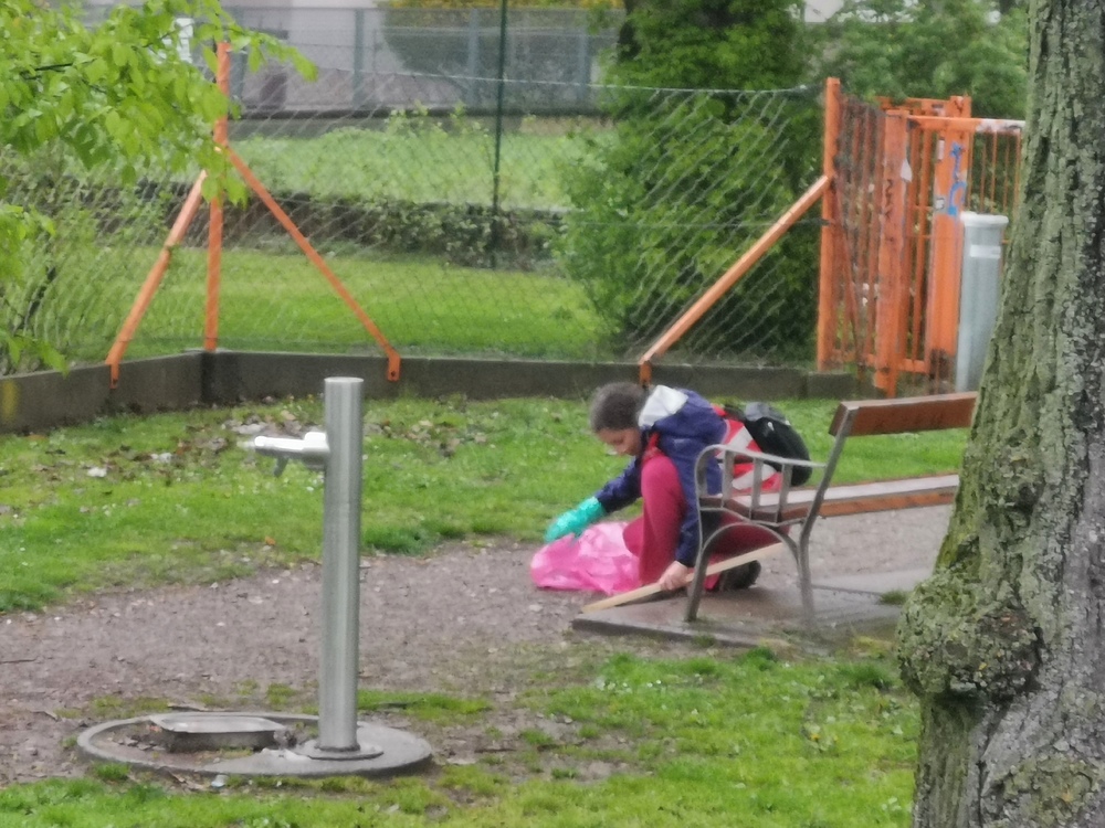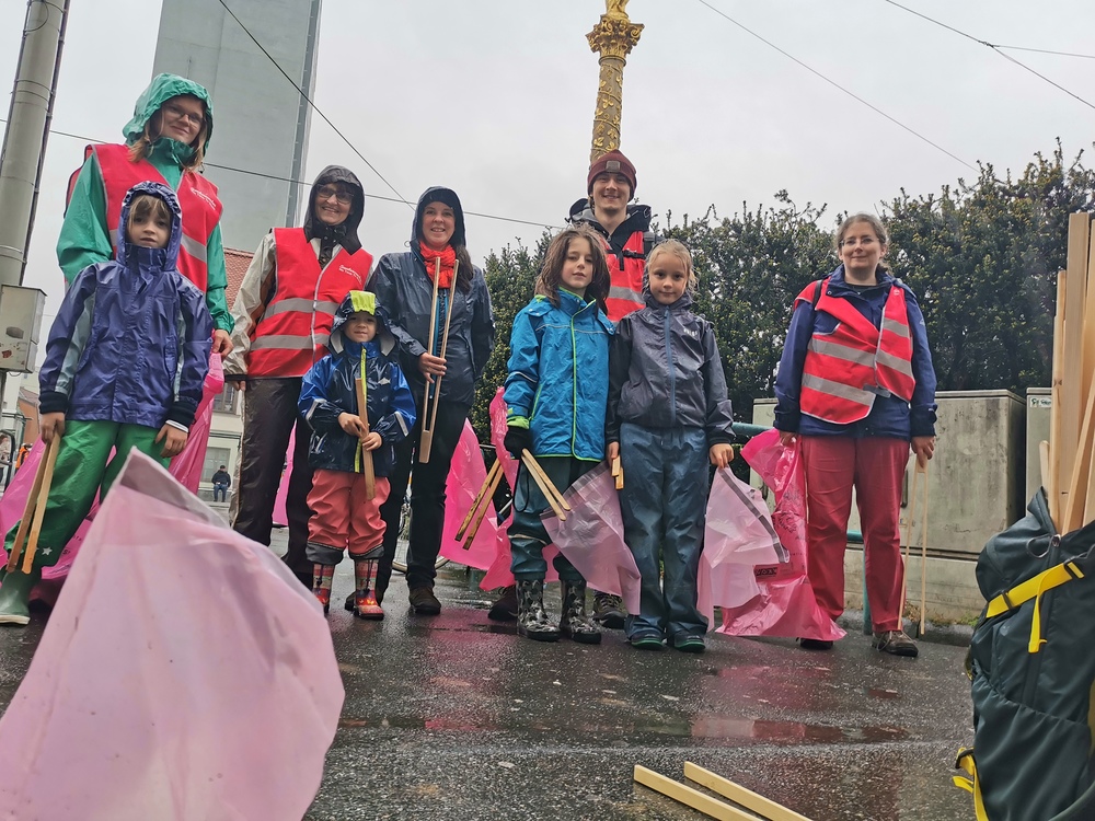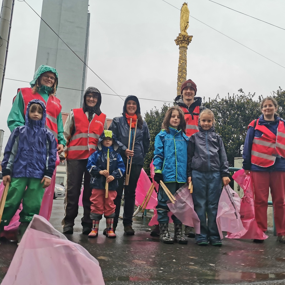 In drei Gruppen aufgeteilt wurden von 7 Erwachsenen und 7 Kindern Parks und Straßen rund um den Griesplatz sauber gemacht.
