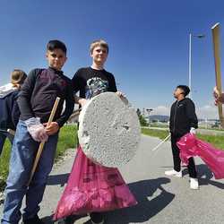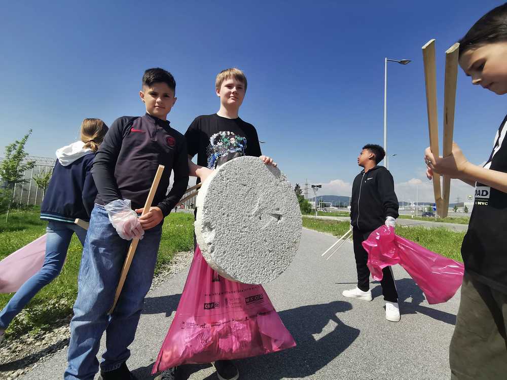 Vor der praktischen Müllsammel-Aktion wurden die 12-jährigen in der Klasse über Problemfelder des Mülls informiert und die Kids waren überrascht (wie auch ich), dass in Österreich pro Kopf (nicht pro Haushalt) und Jahr 570 kg Müll anfällt.