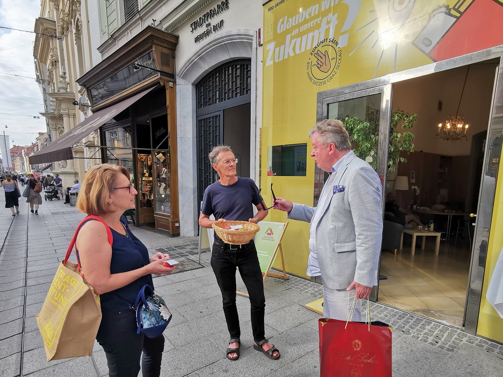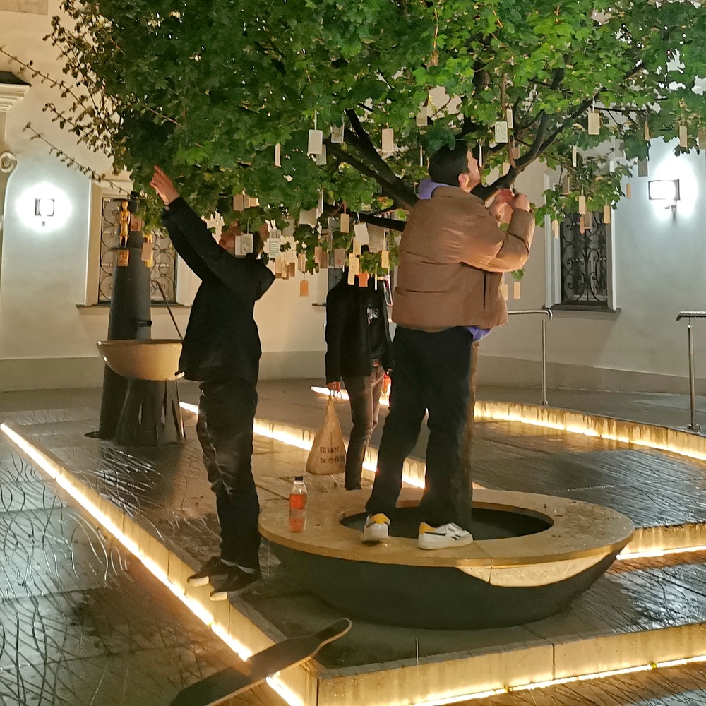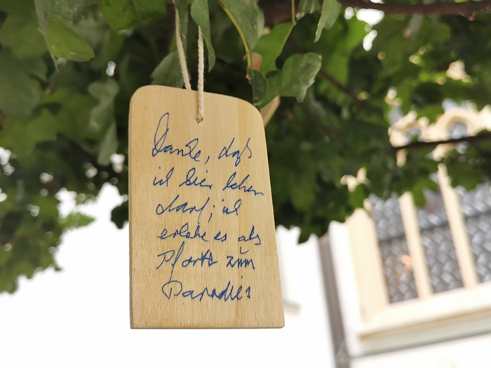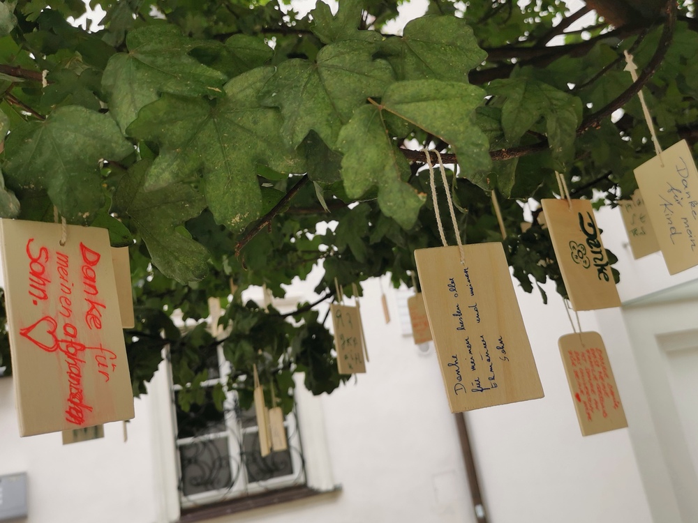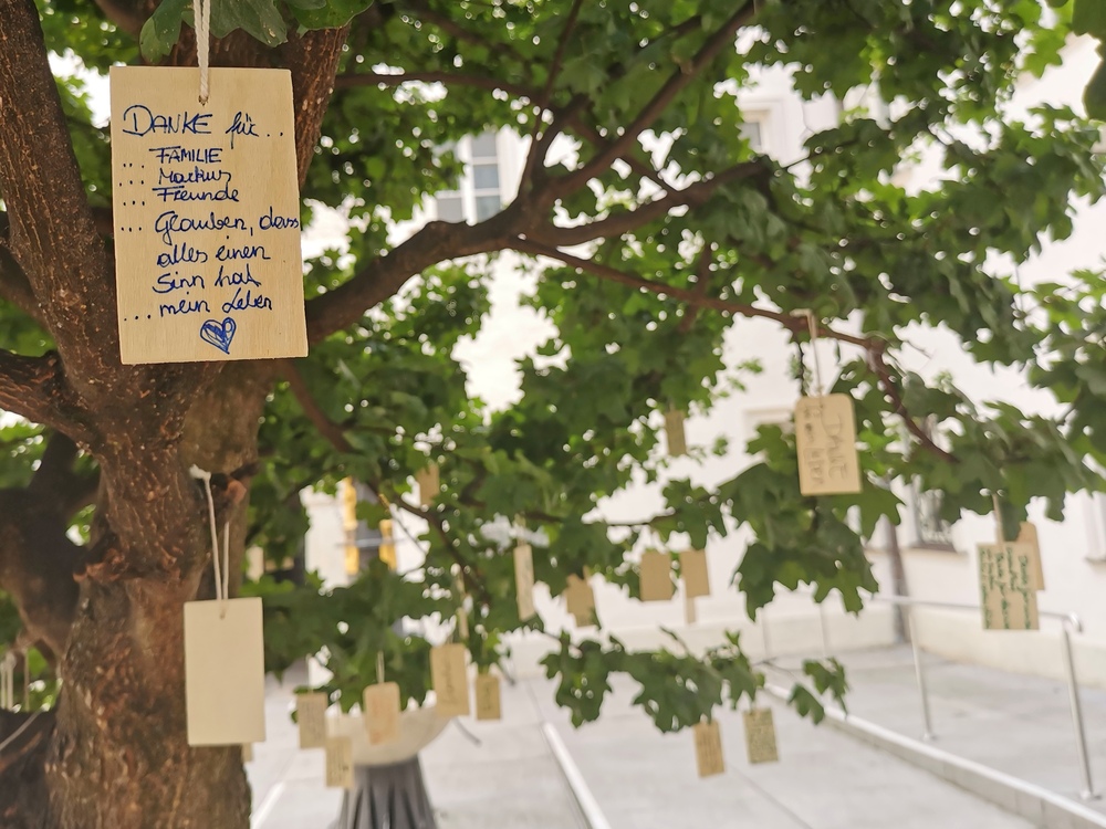 Der Dankbarkeitsbaum im Brunnenhof der Stadtpfarrkirche in der Herrengasse 23 ist täglich zwischen 07:00 Uhr und 20:00 Uhr frei zugänglich.