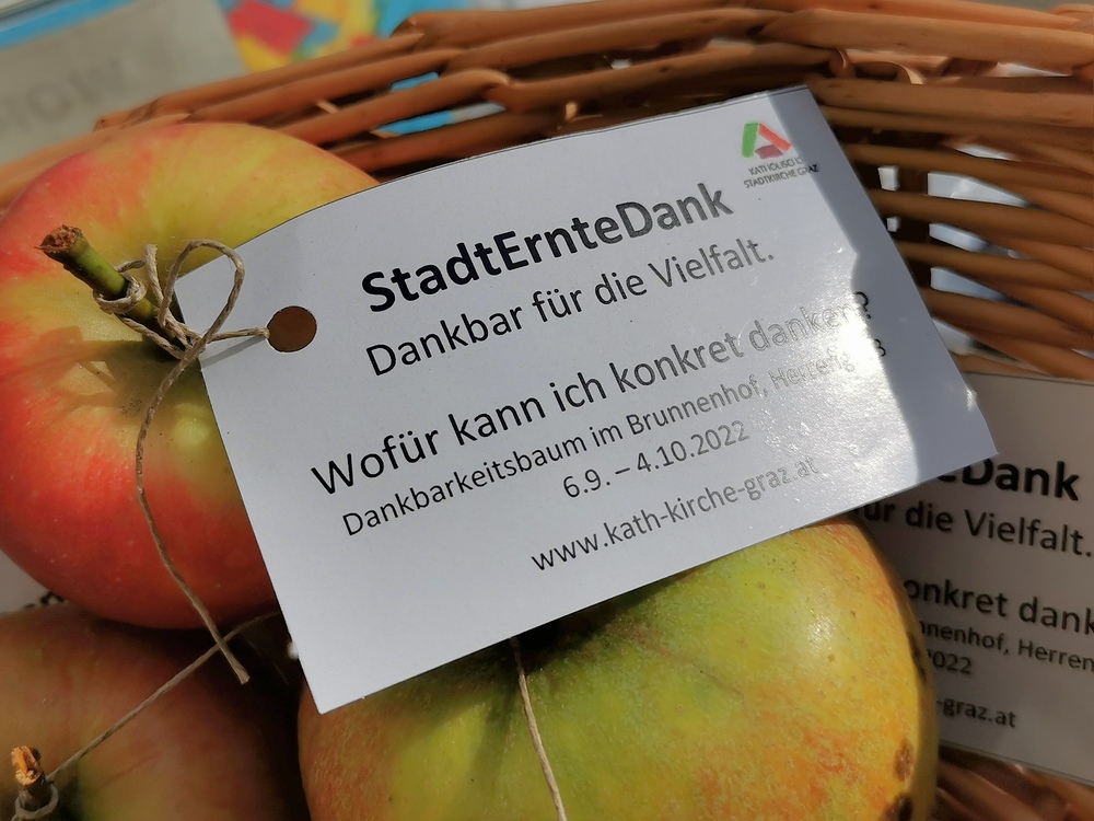 Die Stadt.Ernte.Dank-Aktion findet von 6. September bis 23. Oktober 2022 im Monat der Bewahrung der Schöpfung statt. „Dankbarkeit schenkt Achtsamkeit, Freude und Zufriedenheit.“