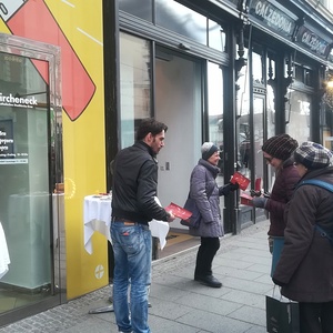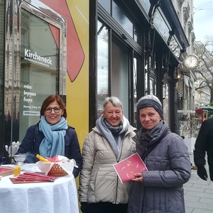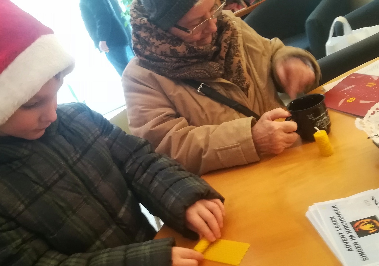 Mit Kerzen aus Bienwachs und einem Stern jeweils zum Selber-Basteln sind fast zweihundert meist Vorbeieeilende beschenkt worden. Manche nahmen sich Zeit, um die Kerze im Kircheneck gleich zu "rollen" oder sind auf ein kürzeres oder längeres Gespräch geblieben. Auch Tee und Glühwein samt selbstgebackenen Keksen wurde serviert.