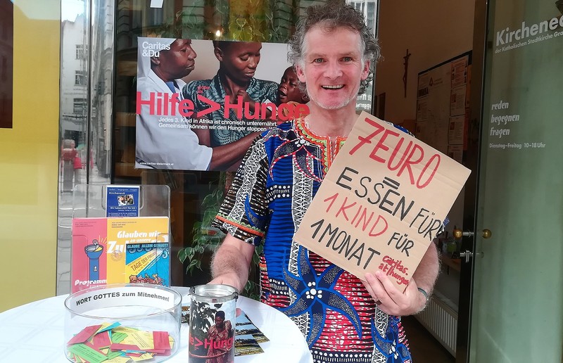 Am 27.07.2018 war das Kircheneck wieder das "Basislager" für die Aktion gegen Hunger in Afrika. Die Menschen wurden in der Grazer Innenstadt darauf aufmerksam gemacht und um Spenden gebeten; diesmal für hungernde Kinder in Burundi. Mit 10 € kann ein Kind in Burundi ein Monat lang ernährt werden. Im Namen der geretteten Kinder in Afrika, ein herzliches Dankeschön allen, die sich auf verschiedene Weise mit der Aktion solidarisiert haben. |