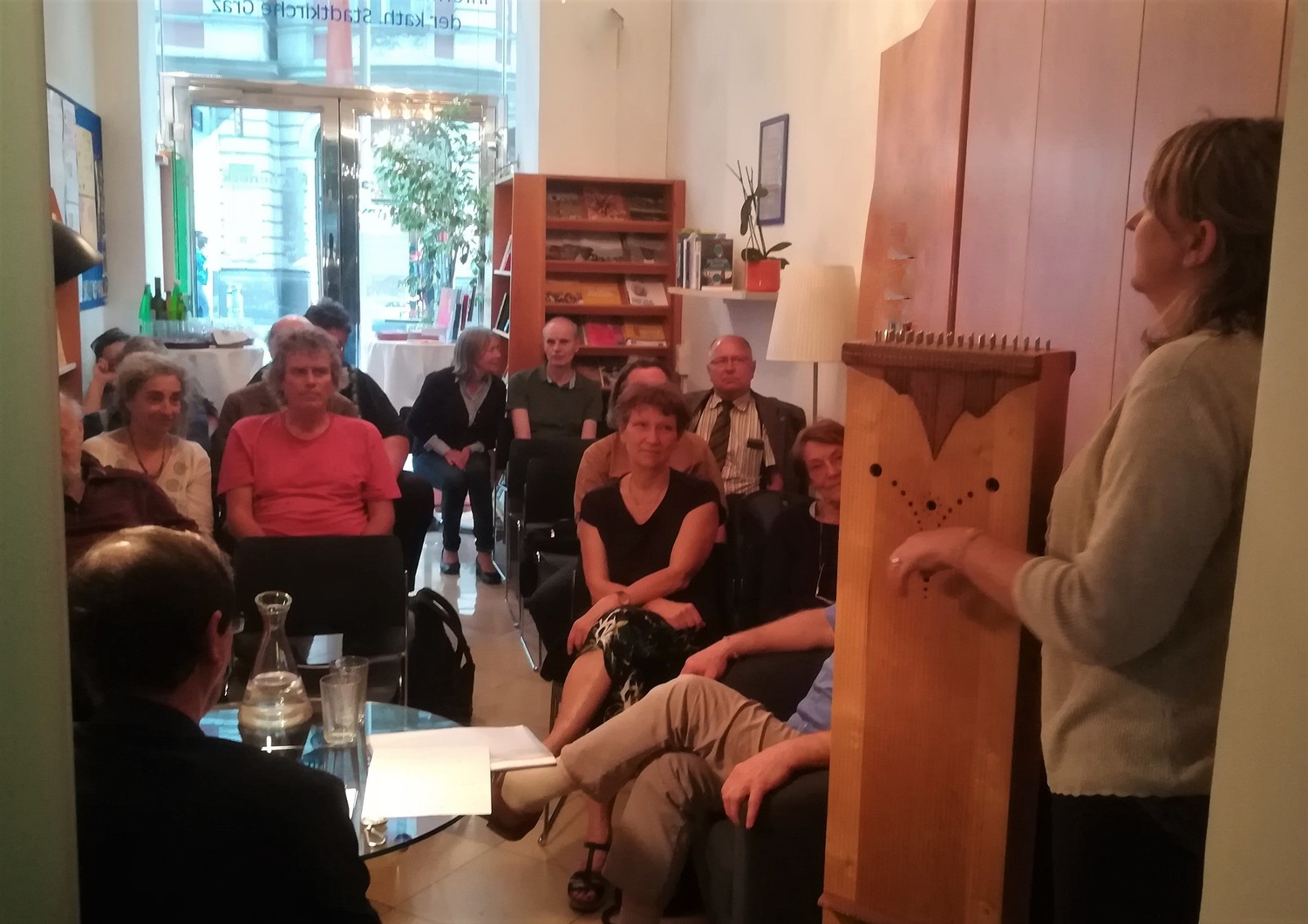 Die Grazer Autoren Anton Christian Glatz und Johannes Ithaler lasen am Donnerstag, 3. Mai um 19.30 Uhr aus ihren interessanten und vielfältigen Werken im Kircheneck. Musikalisch wurde die Lesung von Renate Seiffert mit einem selber hergestelltem Monochord umrahmt.