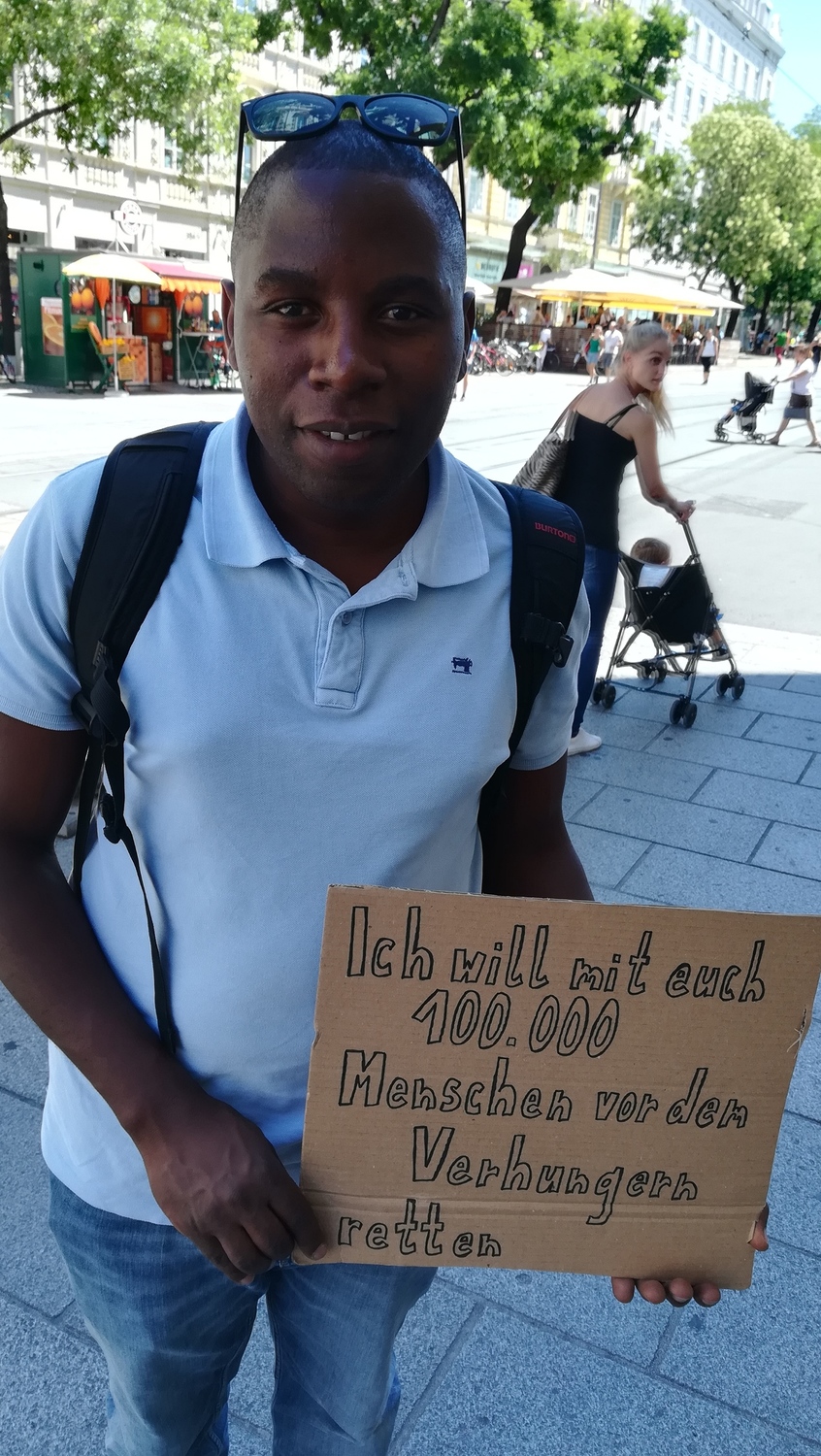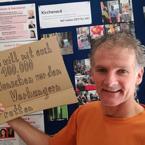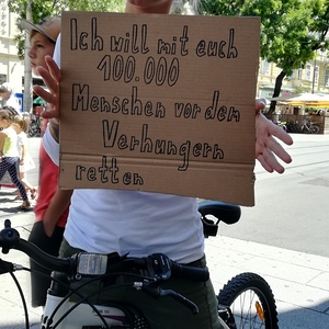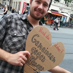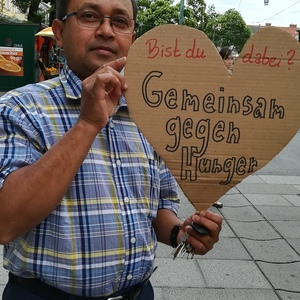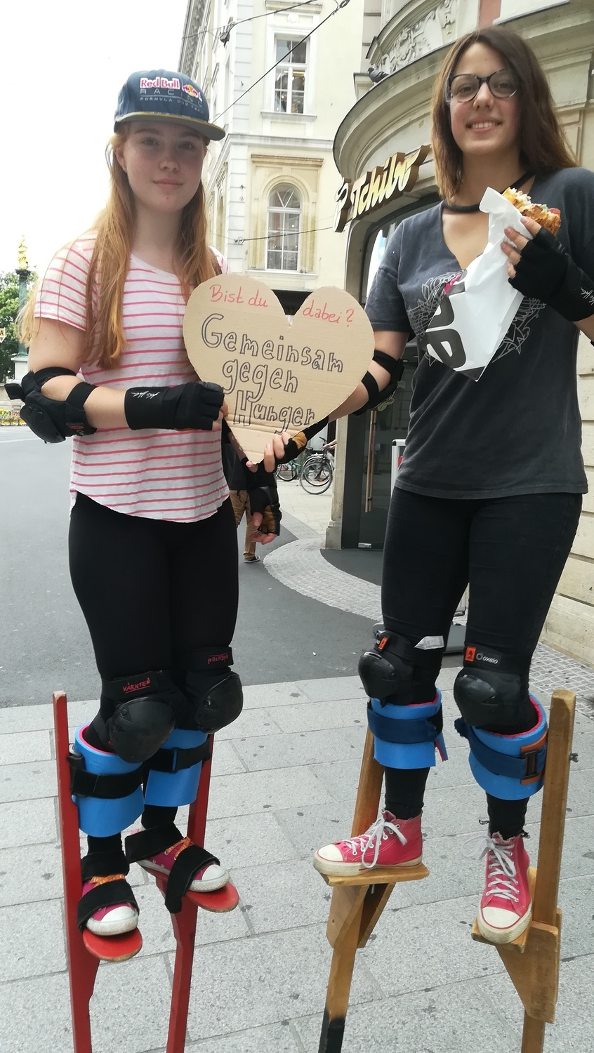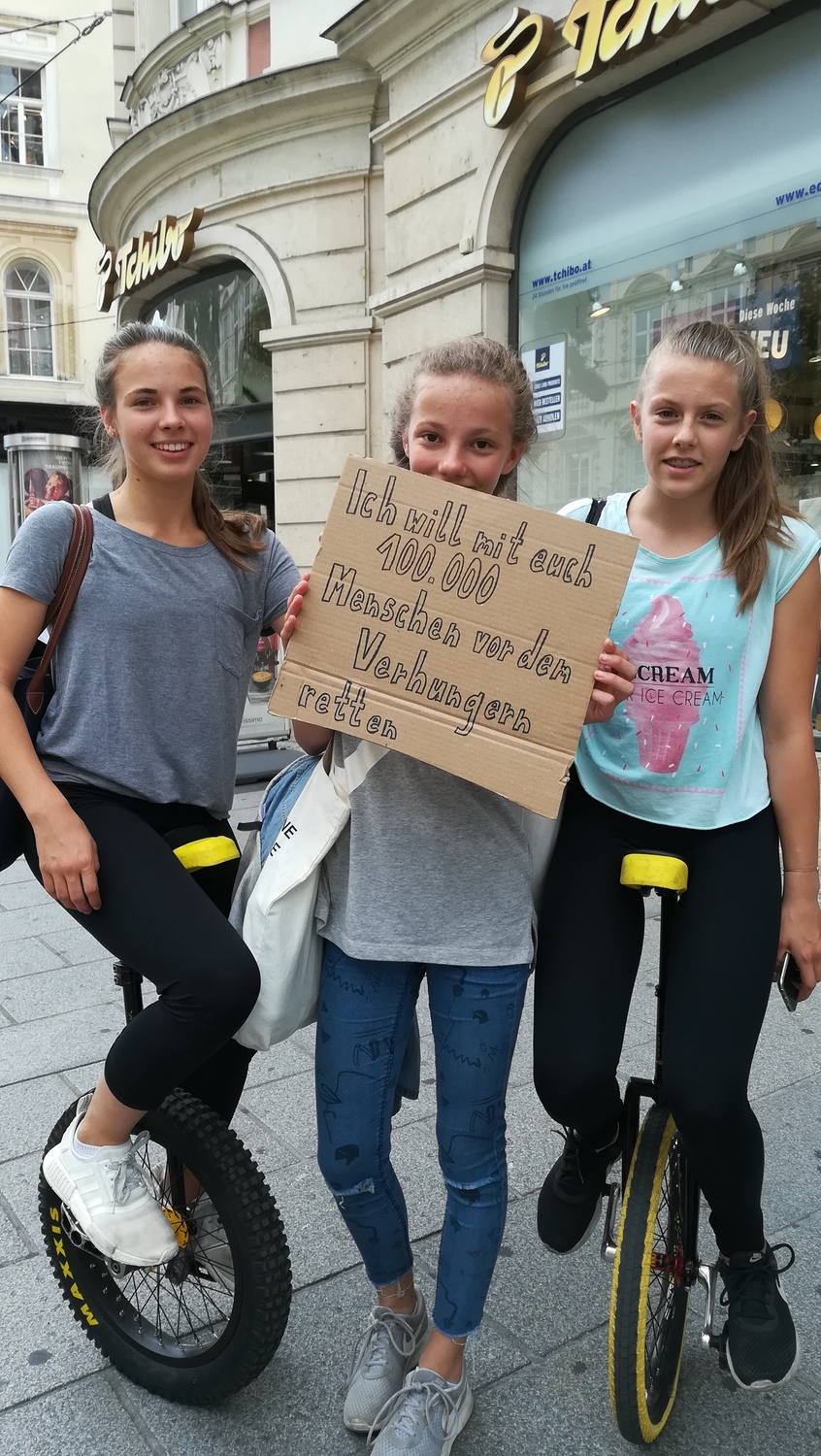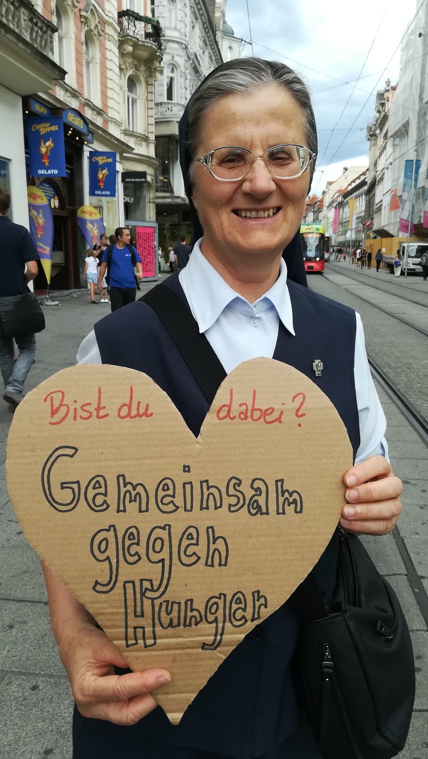 Das Kircheneck war am 28.07.2017 das "Basislager" für die Aktion gegen Hunger in Afrika. Zwischen 12 und 16 Uhr wurden die Menschen in der Grazer Innenstadt darauf aufmerksam gemacht: Man konnte spenden, sich fotografieren lassen oder sich einfach bewusst machen, dass alle 10 Sekunden ein Kind vor Hunger stirbt in Afrika und wir etwas dagegen machen können. Zum Beispiel mit 10 € kann ein Mensch im Südsudan ein Monat lang ernährt werden.