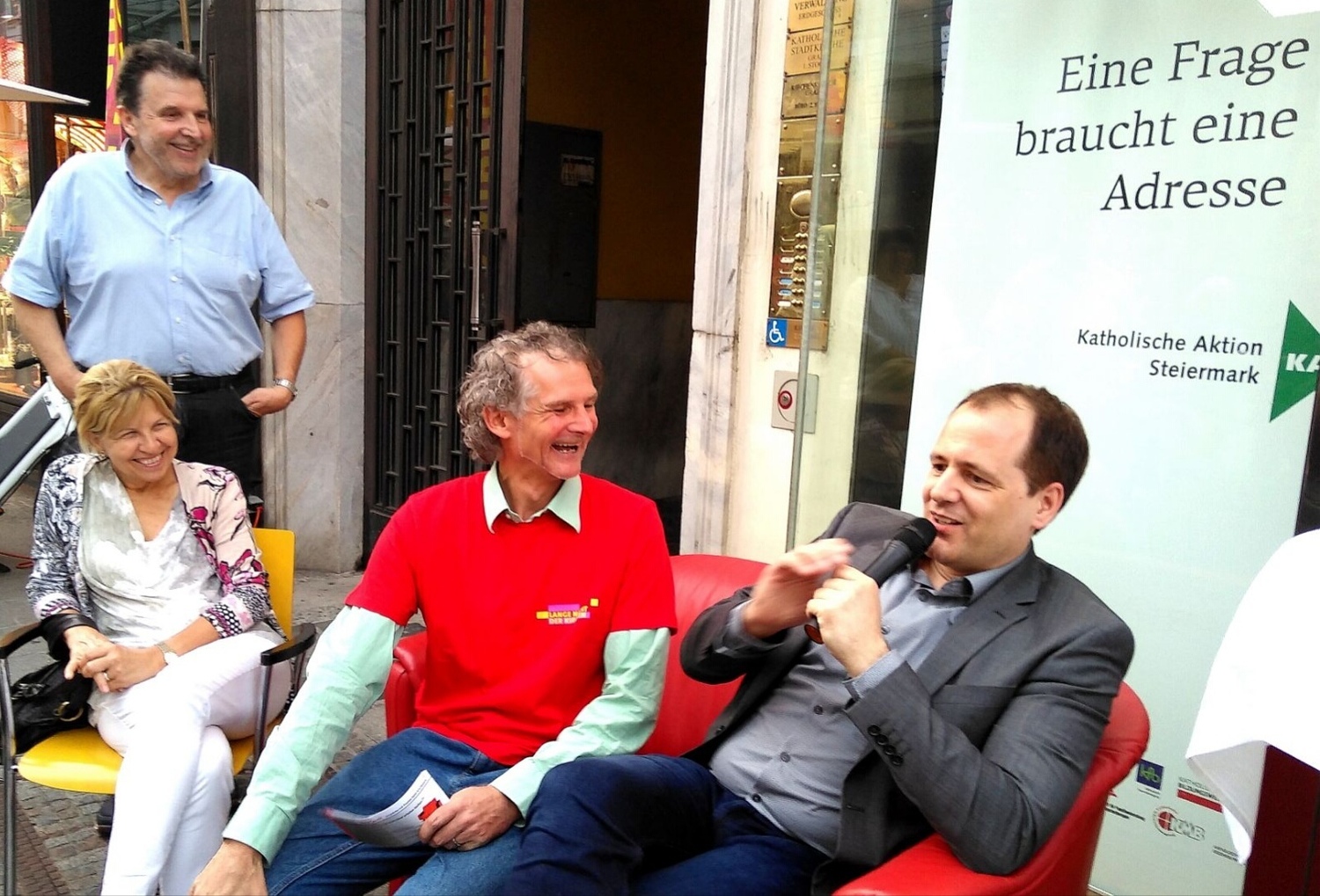 Kircheneckleiter Robert Hautz: „Was normalerweise im Kircheneck stattfindet, wird durch die neue Gesprächsreihe nach draußen verlegt. Kirche will in der Stadt präsent sein, den Menschen begegnen und voneinander lernen. Die Promis sitzen auf der Roten Couch und erzählen aus ihrem Leben. Die Passanten können zuhören, sich dazusetzen und mitreden.“