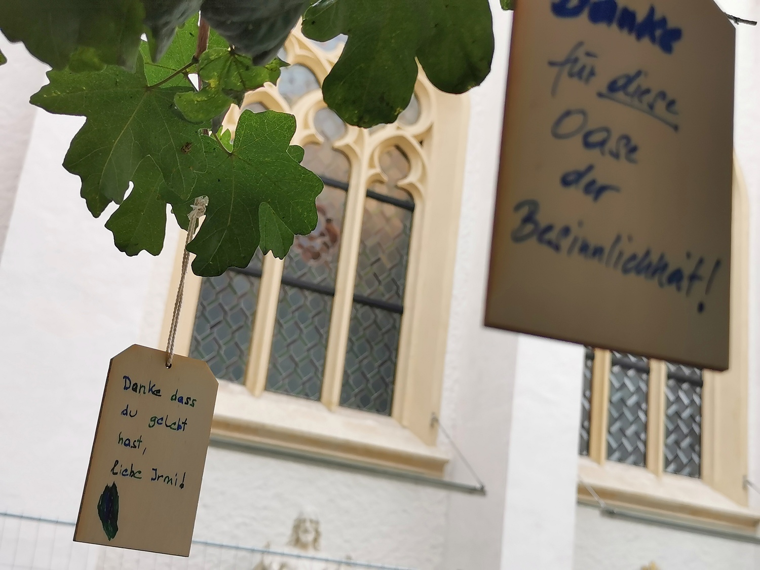 Eines der berührendsten DANKE-Worte schrieb ein Enkelkind über ihre im Sommer plötzlich verstorbene Oma: "Danke, dass du gelebt hast, liebe Irmi!" Gemeint ist Irmgard Kellner, eine langjährige ehrenamtliche Mitarbeiterin im Kircheneck, die öfters stolz von ihren Enkelkindern erzählte. Wunderschön und unglaublich, dass ein Kind eine so traurige Tatsache als Dank formulierte.