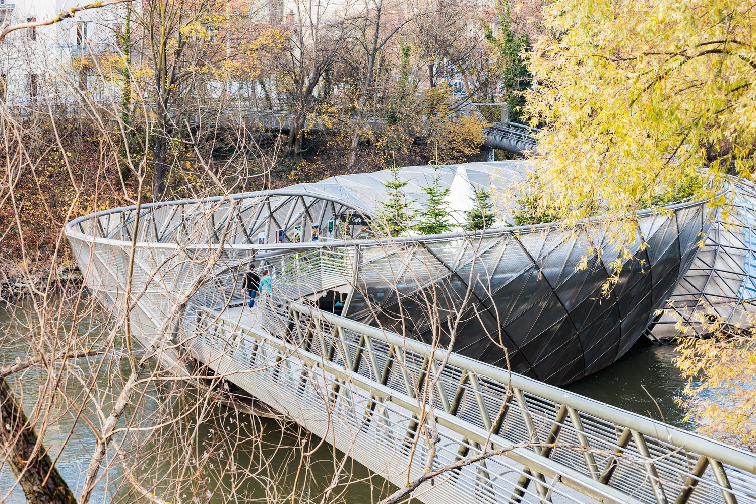 Auf der Murbrücke halten bereits einige staunend inne, und von den Stegen, die die Ufer verbinden, machen sich die ersten schon auf den Weg hin zum Licht. „Save the earth“, „Rette die Erde“, ist auf dem Rucksack eines Jugendlichen im Vordergrund zu lesen. „Christus, der Retter ist da“, singen wir weltweit vielsprachig im „Stille Nacht“ zu Weihnachten.