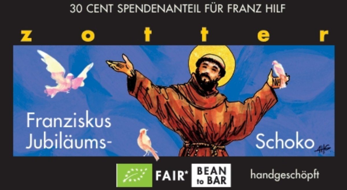 P. Andreas Holl ist nicht zuletzt dankbar, dass es der Fa. Zotter und der Fa. Linzbichler ein Anliegen ist, mit einem Spendenanteil pro verkaufter Schokolade das franziskanische Hilfswerk für Menschen in Not („Franz hilf“) zu unterstützen.