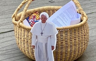 Ein Wissenschaftler, Ordensleute, Klimaaktivistinnen und - aktivisten:Am 4.10.2024 waren klima-engagierte Menschen vor dem Kircheneck "ansprechBAR für Klimafragen".