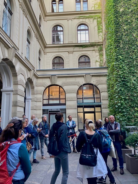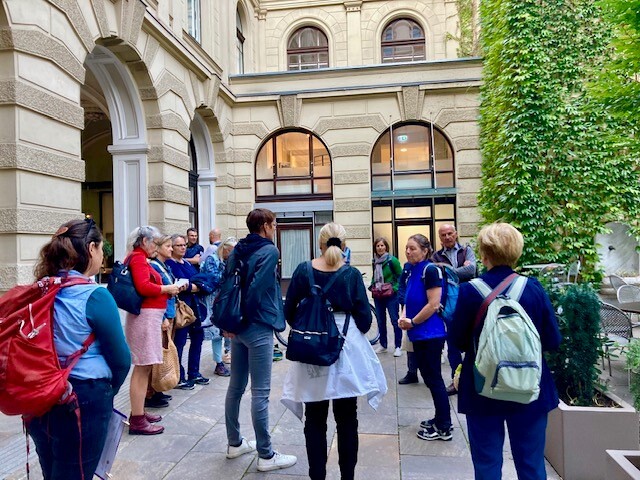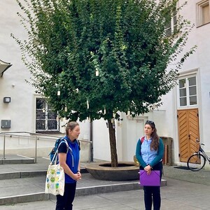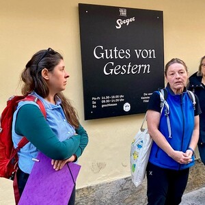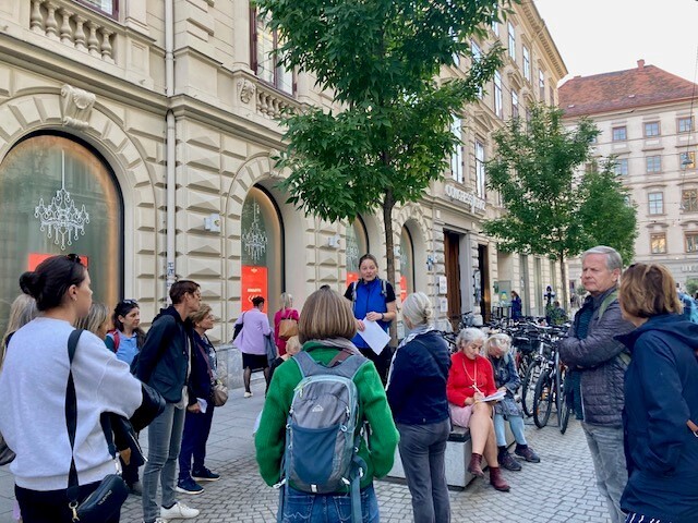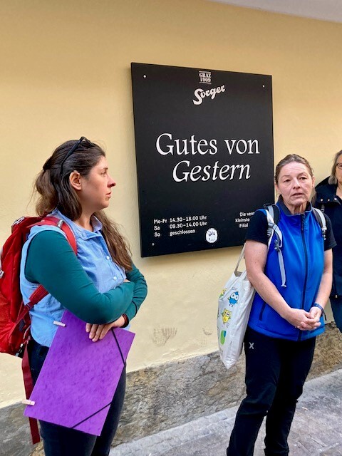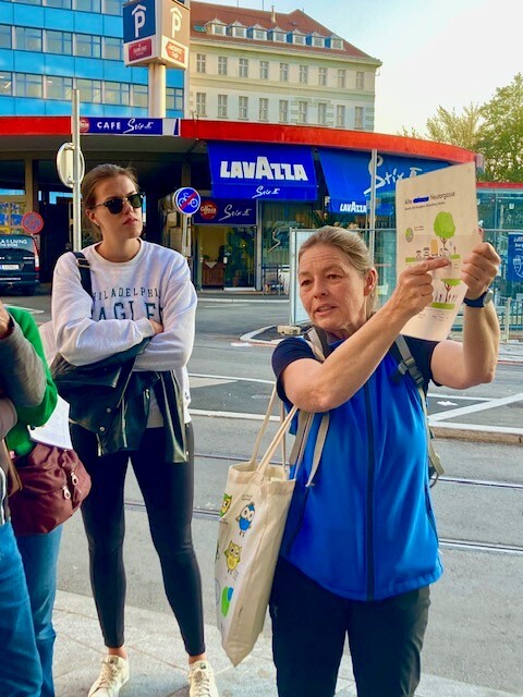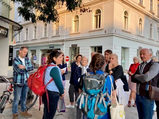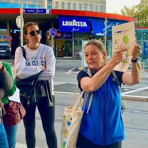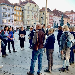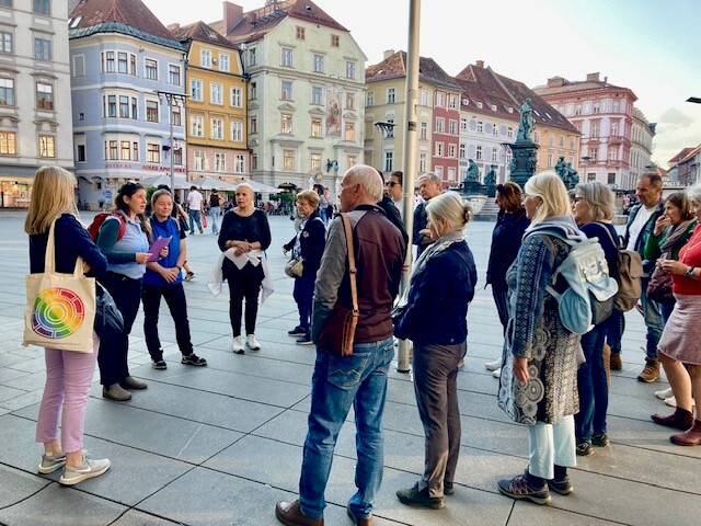 Auf dem Hintergrund der aktuell so deutlichen Auswirkungen des Klimawandels – des heißen Sommers und der anschließenden Starkregenereignisse – führte Klimaexpertin Dr. Anna-Maria Maul des ‚Klimabündnisses Steiermark‘ rund 20 Teilnehmende zu acht Klima-Eckpunkten in der Grazer Innenstadt und erläuterte zahlreiche Klimaschutz- und Klimawandelanpassungen. Die Bepflanzung der Schmiedgasse mit einer amerikanischen Eschenart (die mit extrem heißem Stadtwetter besser zurecht kommt als hiesige Baumarten), der Wasser aufnehmende Platzbelag im Joanneumsviertel sowie der dortige „Pflanzenkäfig“, die verkehrsberuhigte Neutorgasse, das Grazer Recycling-System oder auch verschiedene Car-Sharing-Modelle wurden genau unter die Lupe genommen.