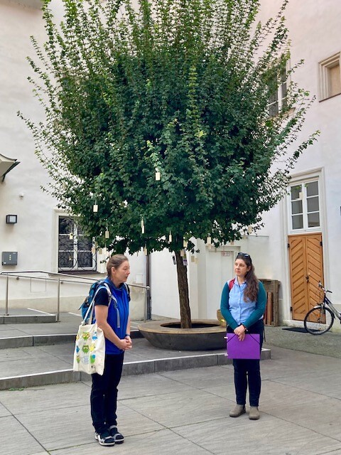 Wandbegrünungen, neue Bepflanzung bei extremem Stadtklima, das „Schwammstadtprinzip“, Verkehrsberuhigung , „Gutes von gestern“ oder auch nachhaltige Tipps für einen Blackout: Dies alles stand am Programm eines gemeinsam vom Klimabündnis Steiermark, der Katholischen Stadtkirche Graz, dem Bildungsforum Mariatrost und dem Katholischen Bildungswerk am 19. September durchgeführten innovativen Klima-Stadtrundgangs durch Graz! Mit einem vollen „Rucksack“ stärkender Impulse aus Papst Franziskus‘ „Klimaenzyklika“ ‚Laudato si‘ – „gepackt“ von Daniela Felber, Referentin für Schöpfungsverantwortung der Katholischen Stadtkirche Graz – war dieser zudem angereichert!