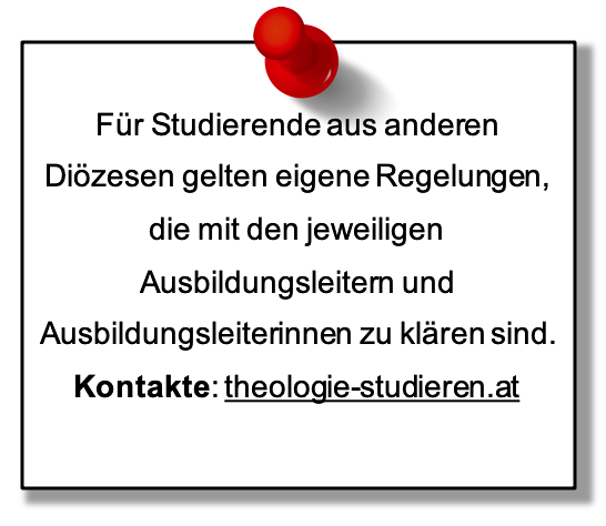 Das Theologiestudium bietet viele Möglichkeiten, sich mit der „Melodie Gottes im Heute“ (vgl. Zukunftsbild der Diözese Graz-Seckau) zu beschäftigen und diese Melodie in sich aufzunehmen und wiederum selbst hörbar zu machen. Als Theologie-StudentIn hast Du dich auf einen spannenden Prozess eingelassen!