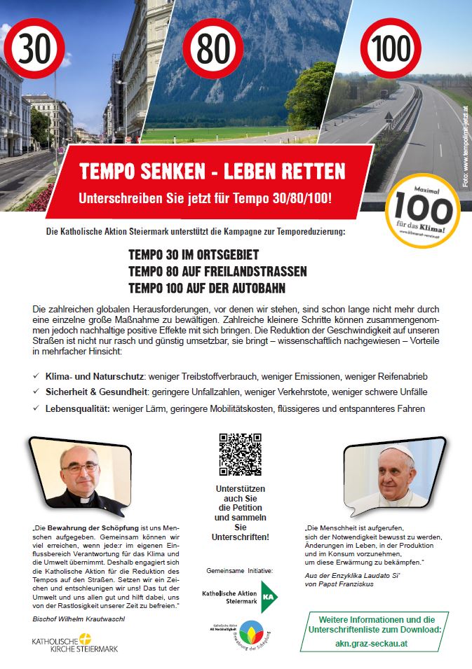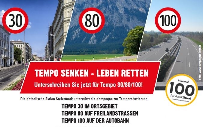 Die Katholische Aktion Steiermark unterstützt die Kampagne zur Temporeduzierung: