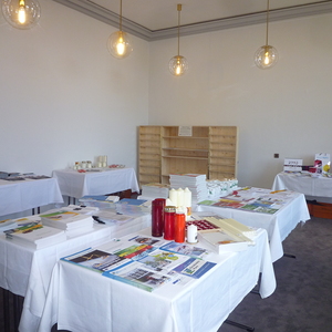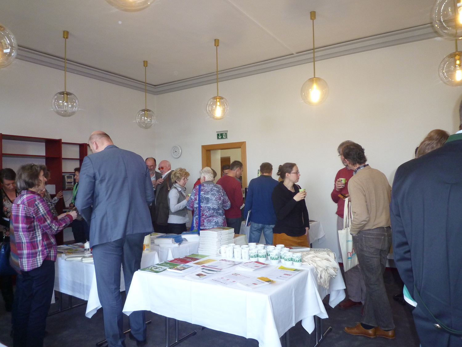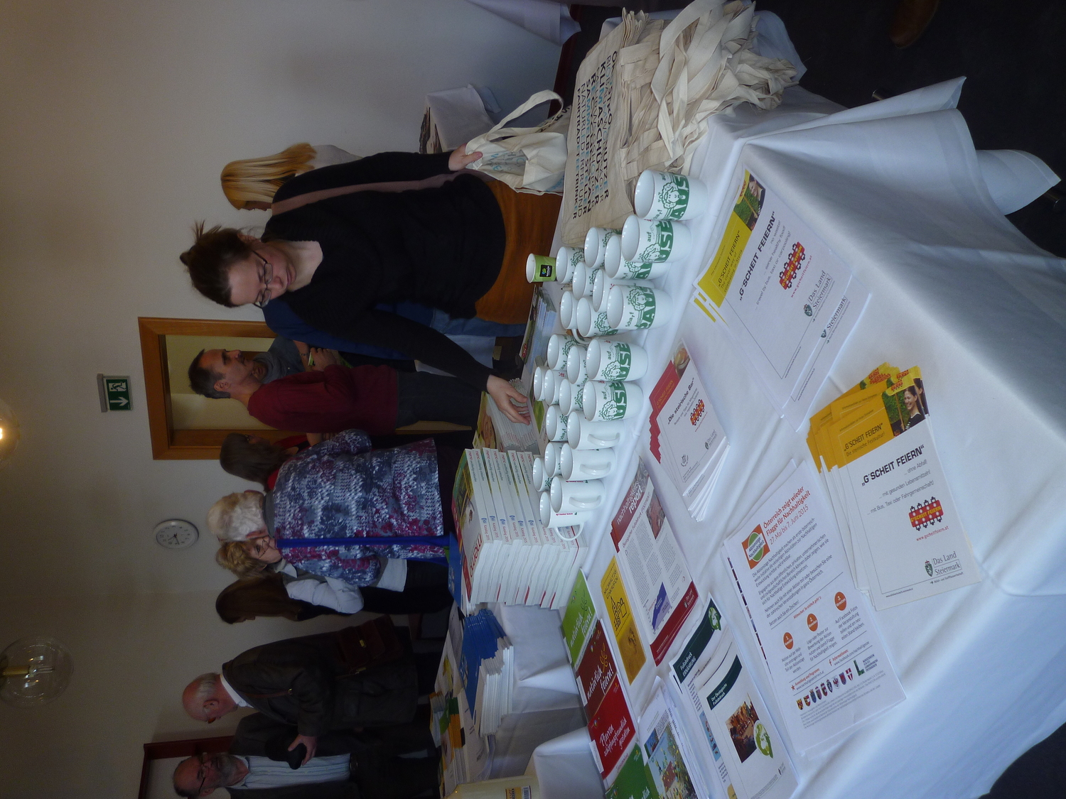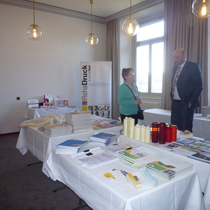 Eine Stunde lang war dann Zeit für den "Marktplatz des fairen Einkaufs“ mit elf Firmen, die für Pfarren relevante Produkte anbieten. Persönliche Informationen erhielten die TeilnehmerInnen von Gredler Kerzen, Reha-Druck, Klimabündnis, Fairtrade, Kerzen Gasser und Gofair-Kaffee. Unterlagen gab es von Memo, Zukunft einkaufen (D), Compuritas- Green IT, Land Steiermark und Sanitär Hagleitner.