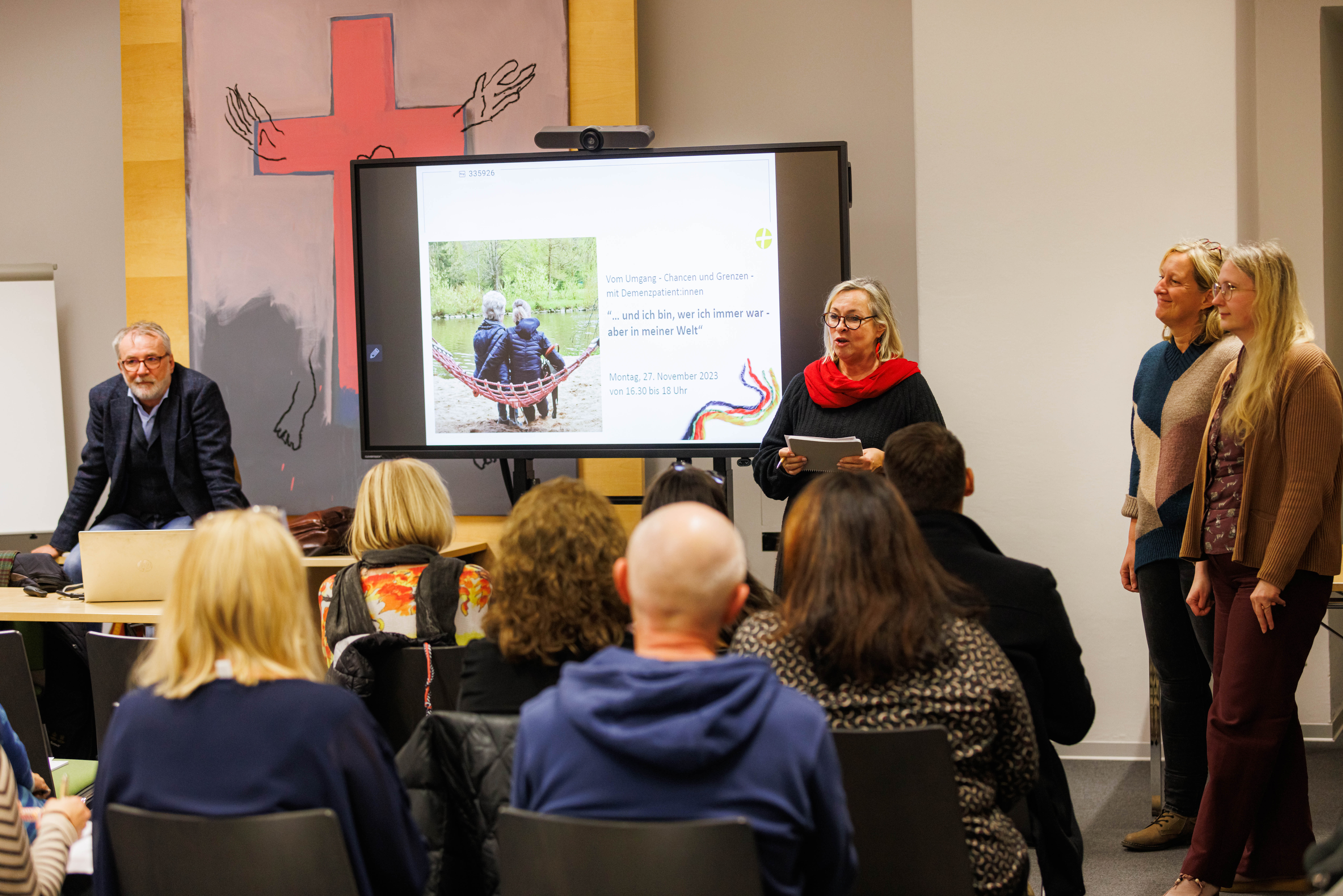 Dr. Erwin Horst Pilgram, Primarius der Abteilung Medizinische Geriatrie und Hospiz und Stellvertreter des Ärztlichen Leiters der Albert Schweitzer Klinik, vermittelte den Anwesenden am Montag, 27.11.2023, im bischöflichen Ordinariat in einem 1 1/2-stündigen Vortrag grundlegendes Wissen über die Diagnose Demenz.