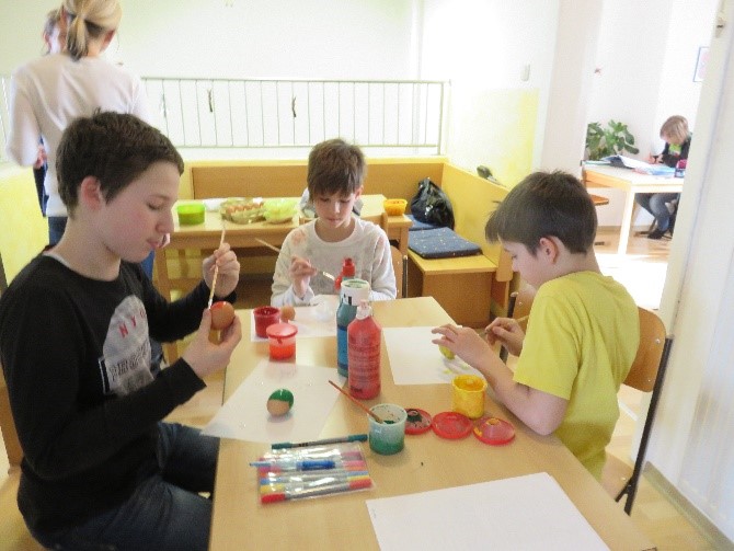 Kinder lieben zu gestalten und mit unterschiedlichen Materialien ihre Kreativität auszuleben. Sie stellen ihre Sicht der Wirklichkeit zur Welt, Gefühle und Erlebnisse dar. Jeder künstlerische Ausdruck ist ein Stück Selbsterfahrung und Persönlichkeitsentwicklung.¹ Eine Vielzahl an Bastelmaterialien, Farben, Werkstoffe wie Holz,Darstellungsmöglichkeiten und Bücher stehen ihnen zur Verfügung. Kinder können Geräte zerlegen und wieder zusammenbauen, außerdem „verschönern“ wir unseren Hort gemeinsam. Immer wieder gibt es kleine Projekte, in denen interessierte Kinder mit Schleifmaschine, Pinsel und Lack arbeiten. Die Kinder entscheiden, ob sie eigene Ideen umsetzen oder sich lieber an unseren Angeboten orientieren. Wichtig ist uns dabei nicht bewertend vorzugehen.