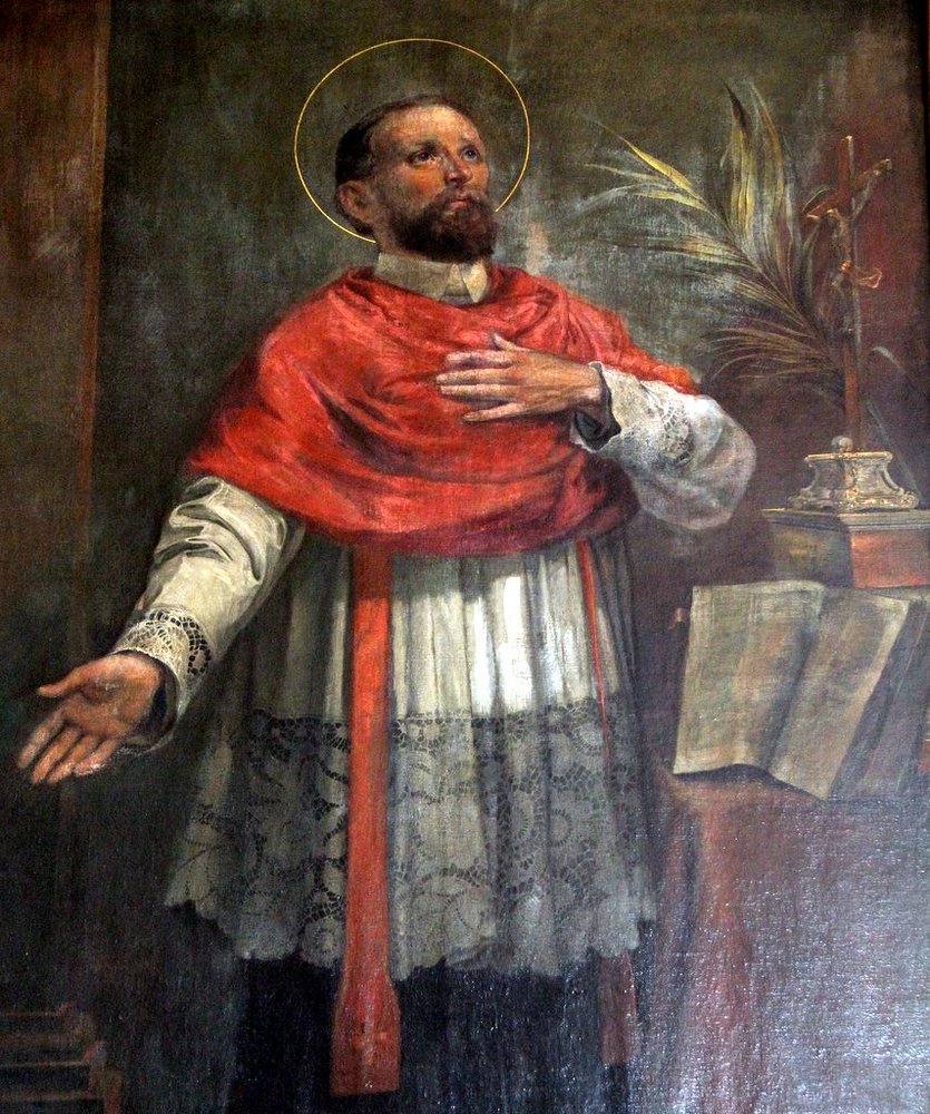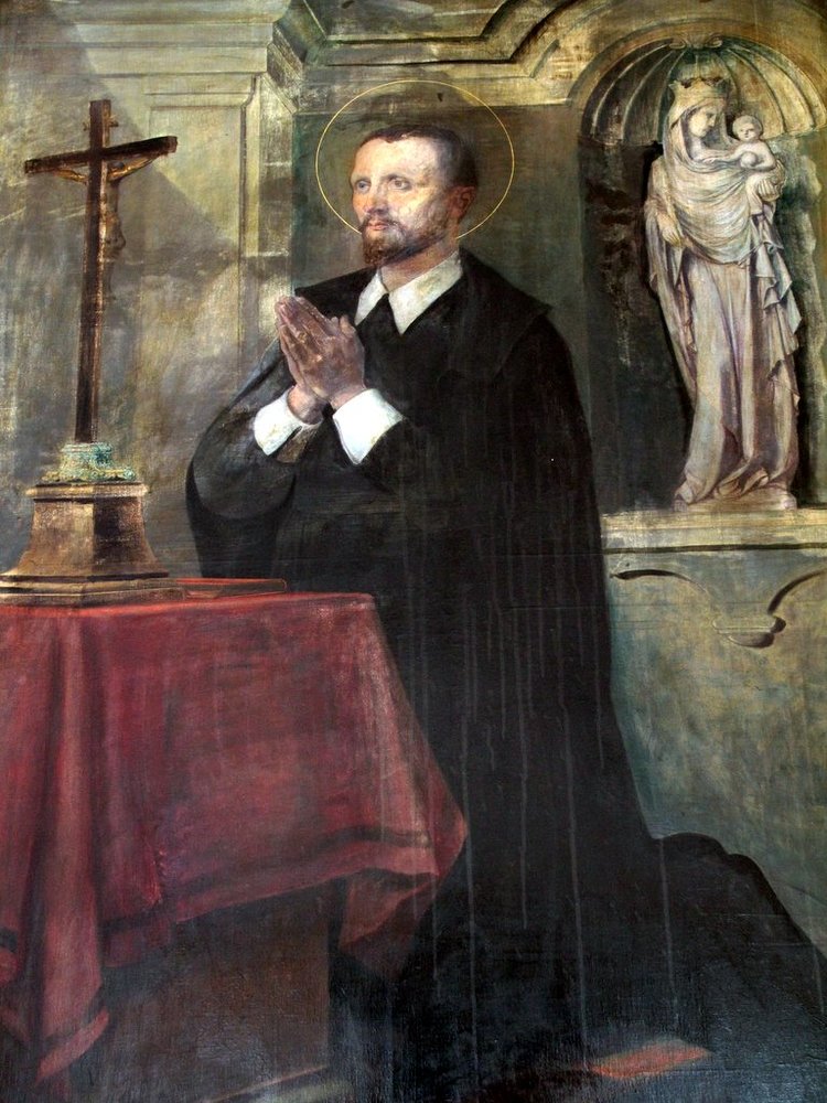 Gleichzeitig mit dem Jesuitenbibliothekssaal (heute Barocksaal) wurde das im ersten Stock des NW-Flügels befindliche Refektorium im barocken Sinne prunkvoller ausgestaltet. Schon das Holzportal weist auf den Innenseiten Doppelsäulen und aufwendige Schnitzereien sowie Einlegearbeiten auf. Zu beiden Seiten des langgestreckten Saales öffnen sich Fenster zum ehem. Universitätshof bzw. in den rückwärtigen Garten, die durch das hier höhere Niveau von außen gesehen ebenerdig liegen. Die Fensternischen sind mit großlappigen Akanthusstuck überzogen. An den Wänden zwischen den Fenstern hängen monumentale Gemälde mit Heiligendarstellungen, die kleinen Stuckkartuschen darüber zeigen Name und Wappen der ursprünglichen Spender. Wegen Baugebrechen musste die Decke im Jahre 1904 ausgewechselt werden. Der Raum hat dennoch seine barocke Repräsentanz bewahrt und dient glücklicherweise immer noch seiner ursprünglichen Funktion entsprechend - als Speisesaal.