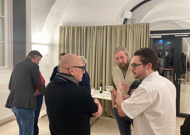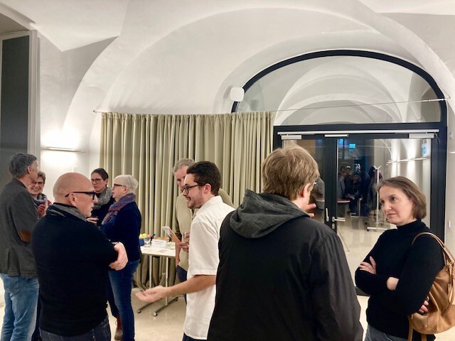 Nach der Veranstaltung tauschten sich die engagierten Teilnehmer:innen noch lange mit dem Referenten bei einem Glas Wein aus.