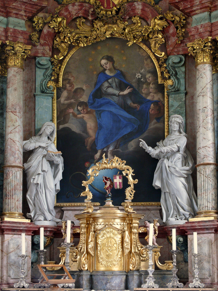 Die Schlosskirche ist der Maria Immaculata (der ohne Erbsünde empfangenen Maria, 8. Dezember) geweiht. Die Gottesmutter ist auf dem Hochaltarbild dargestellt.