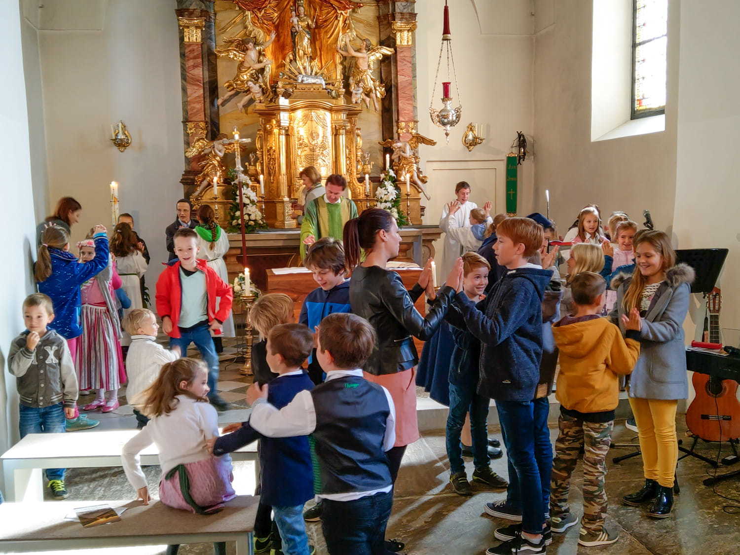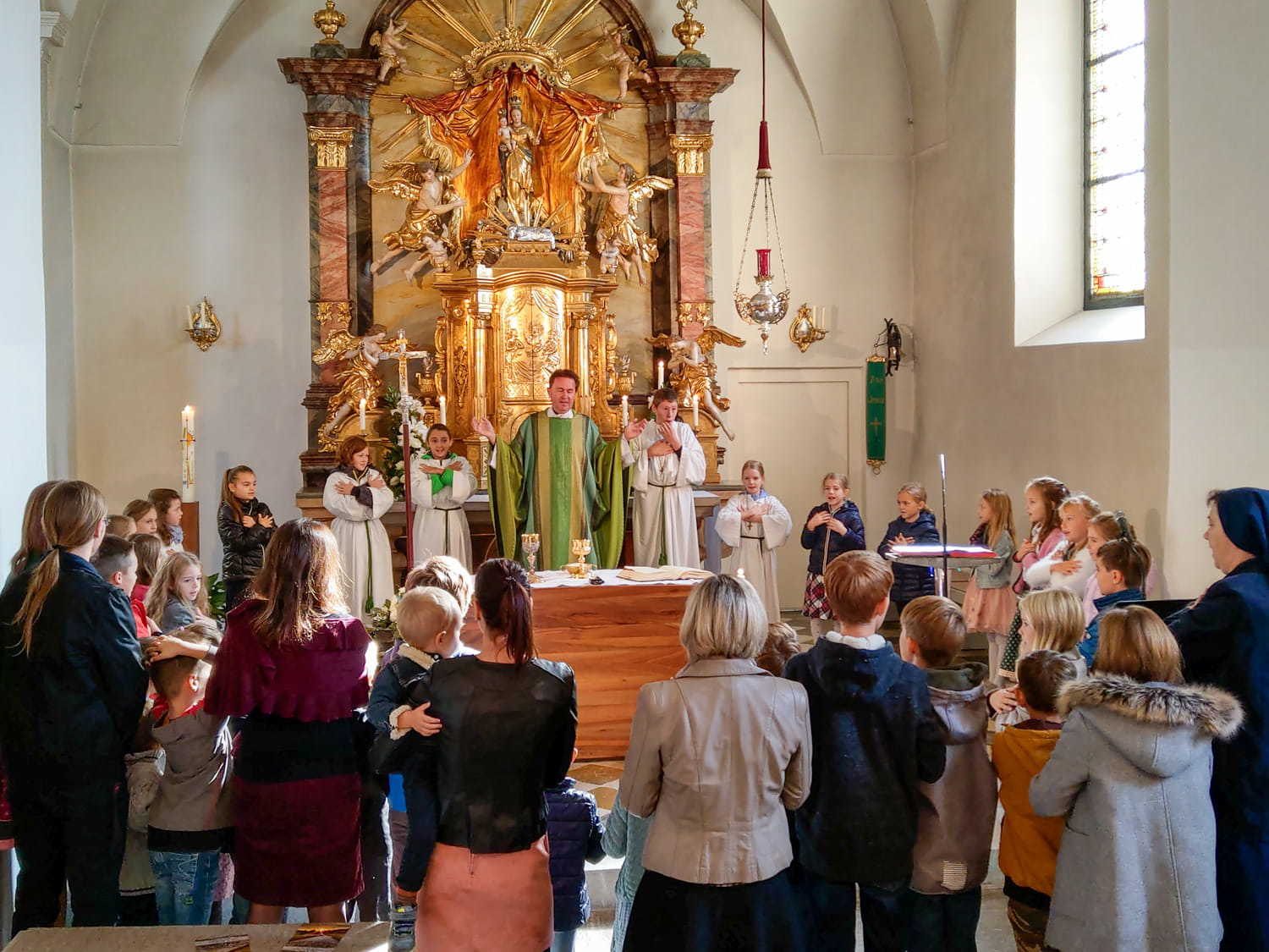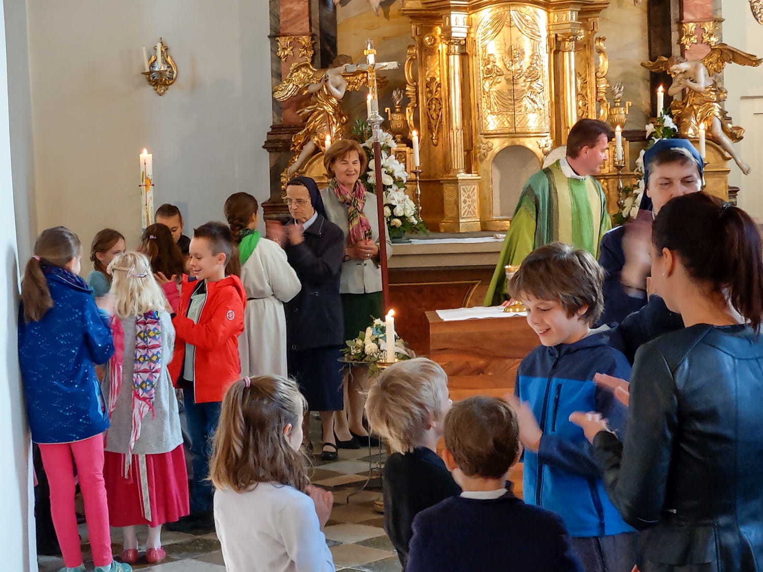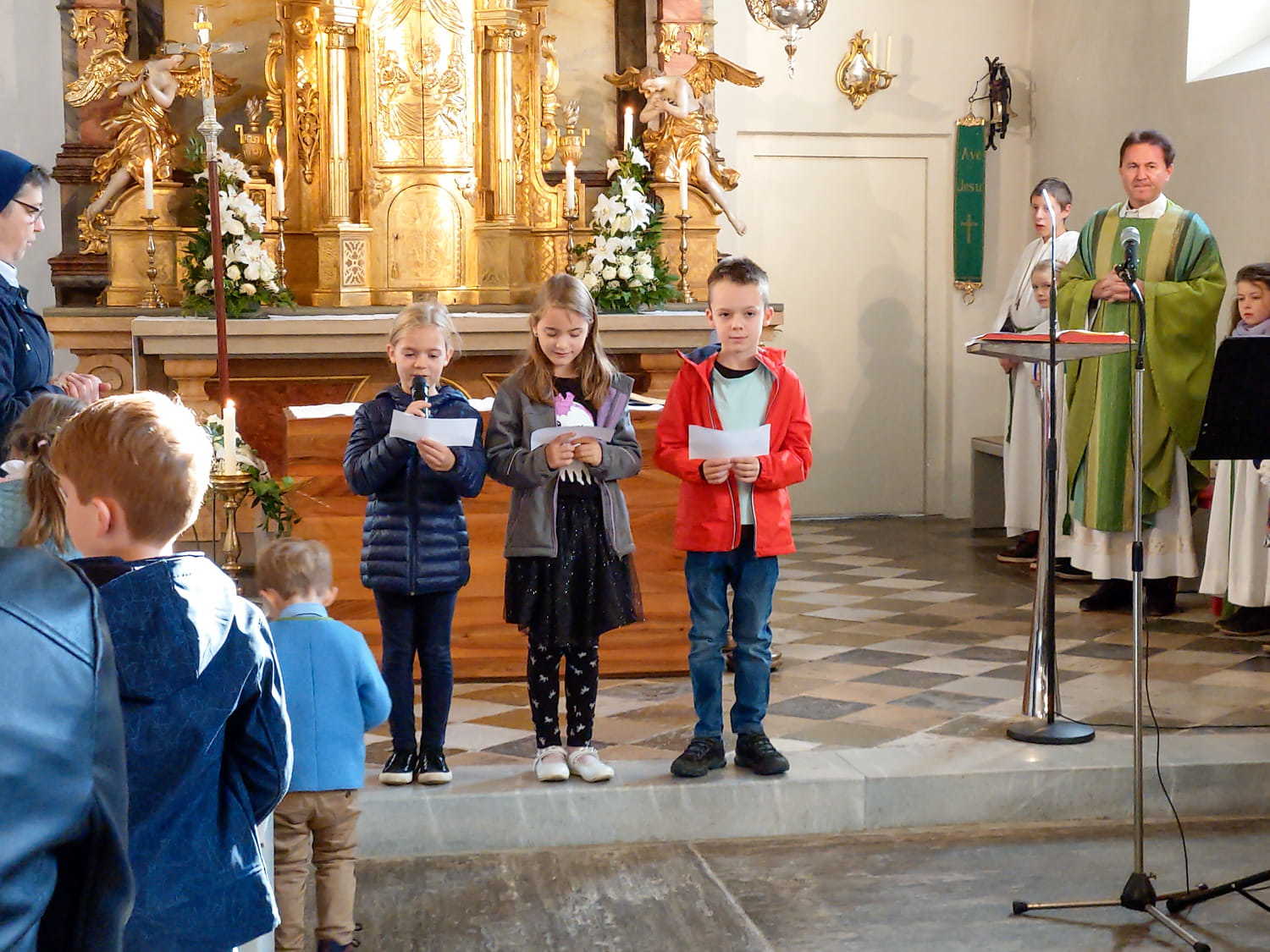 Am Sonntag, den 20. Oktober wurden unsere 22 Erstkommunionkinder bei einem schwungvollen und schönen Gottesdienst der Pfarrgemeinde vorgestellt. Damit beginnt die Erstkommunionvorbereitung, die von den Eltern und Kommunionbegleitern durchgeführt wird.