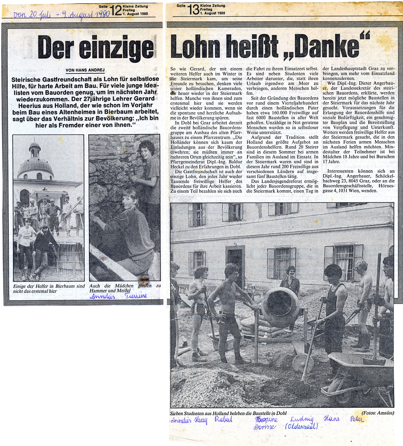Der Einsatz des holländischen Bauordens war bei diesem Umbau ein besonderes Erlebnis für die Pfarrbevölkerung. Es kann durchaus sein, dass der Dobler Pfarrhof erst durch das Miterleben des selbstlosen Einsatzes der Bauordensgesellen zur Angelegenheit der Bevölkerung wurde. Hieß es nicht vorher, der Pfarrhof sei Sache des Ordinariats?