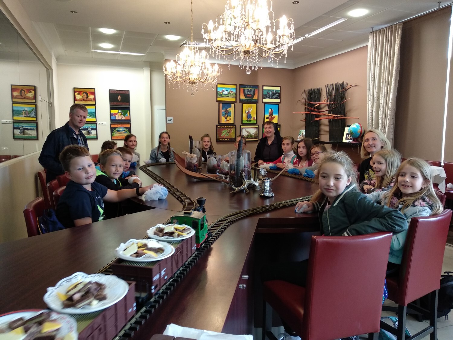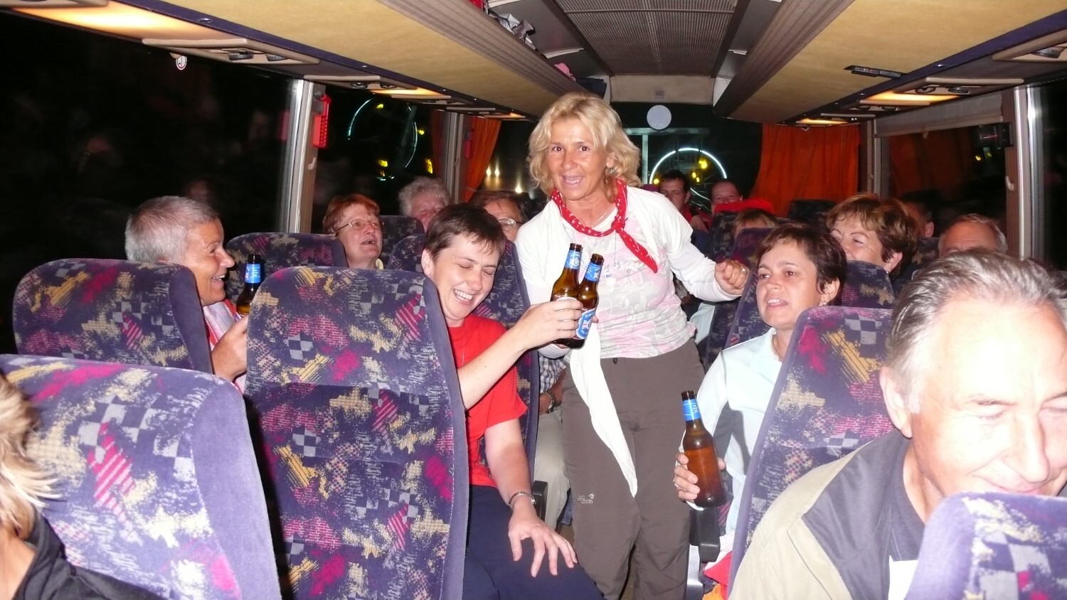 Anreise: Sr. Maria in der ersten Reihe zwischen den Kindern