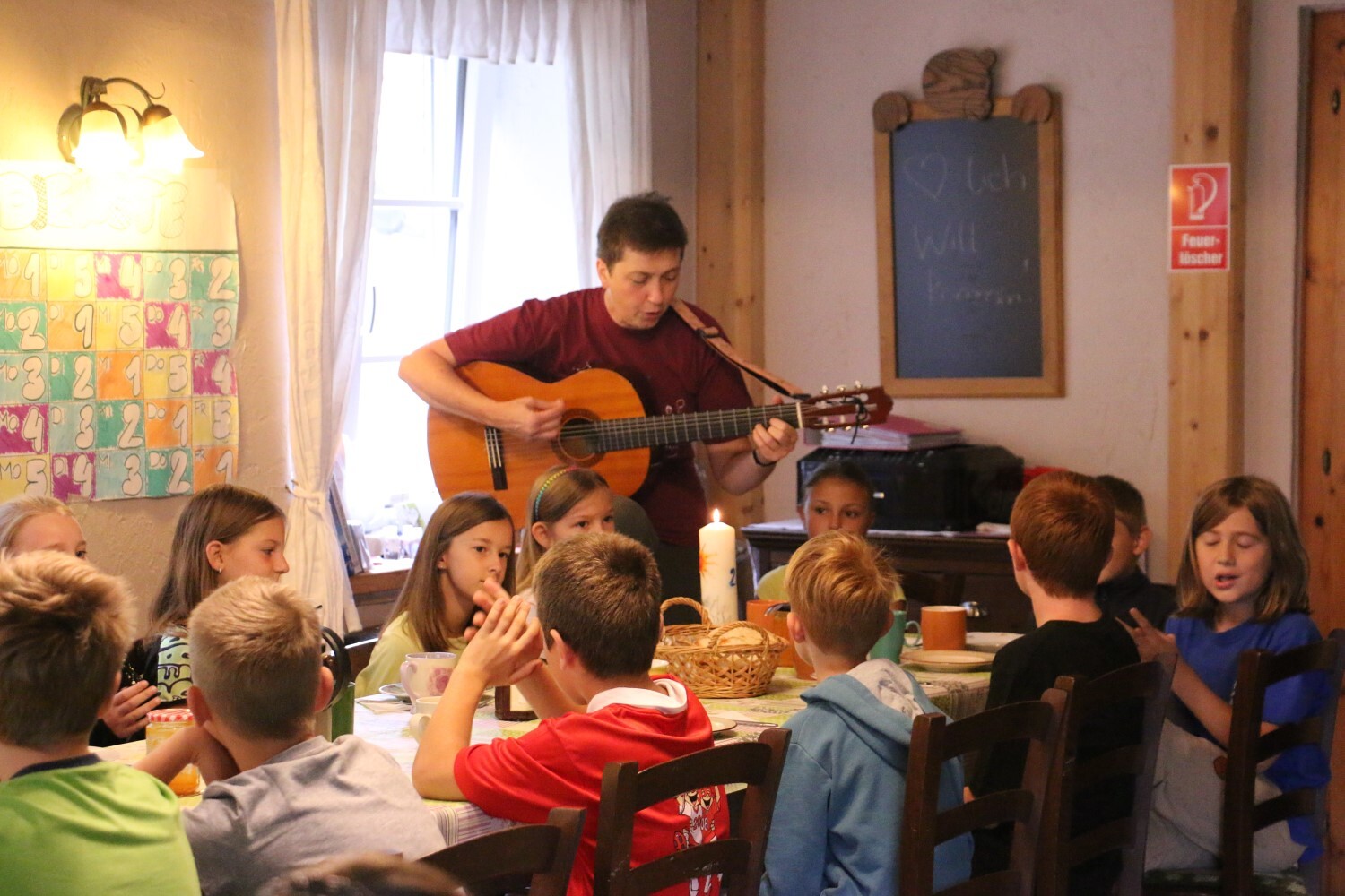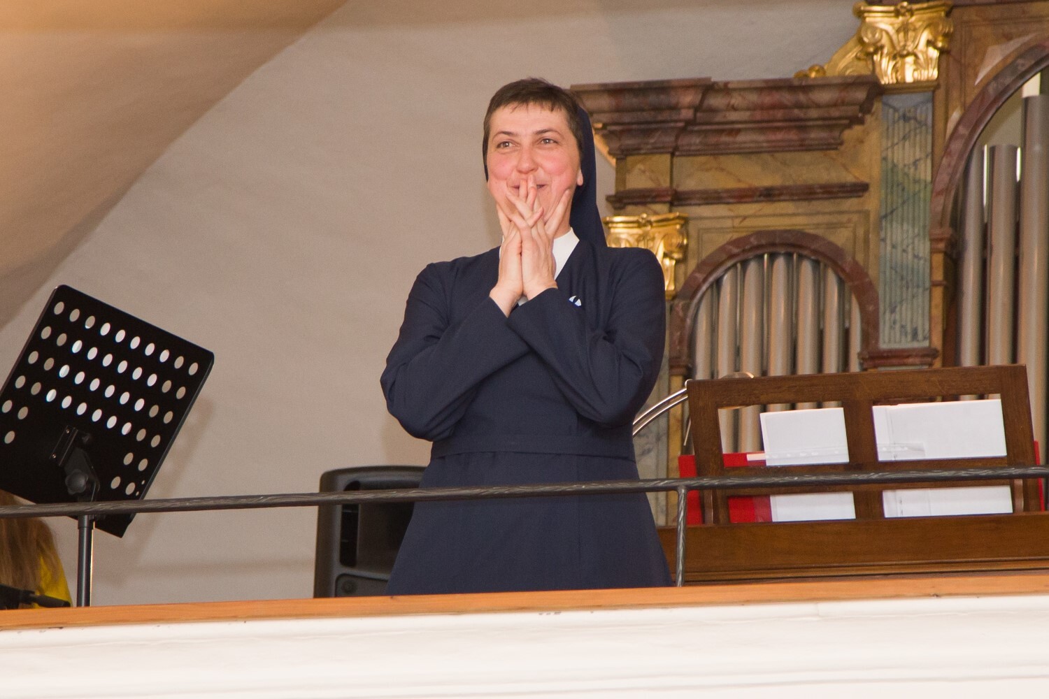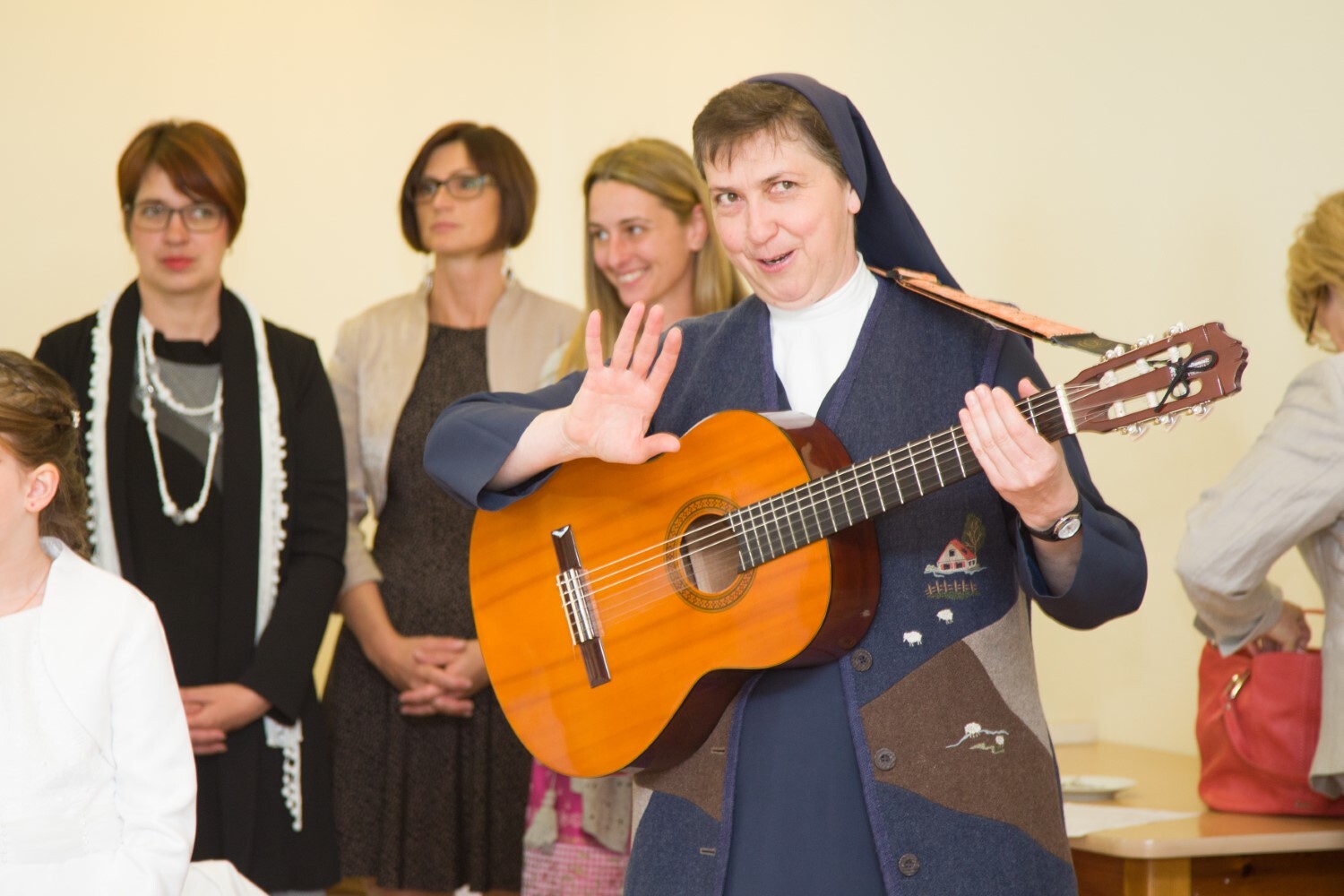 Sr. Maria singt zum Morgenlob ein Lied mit den Kindern