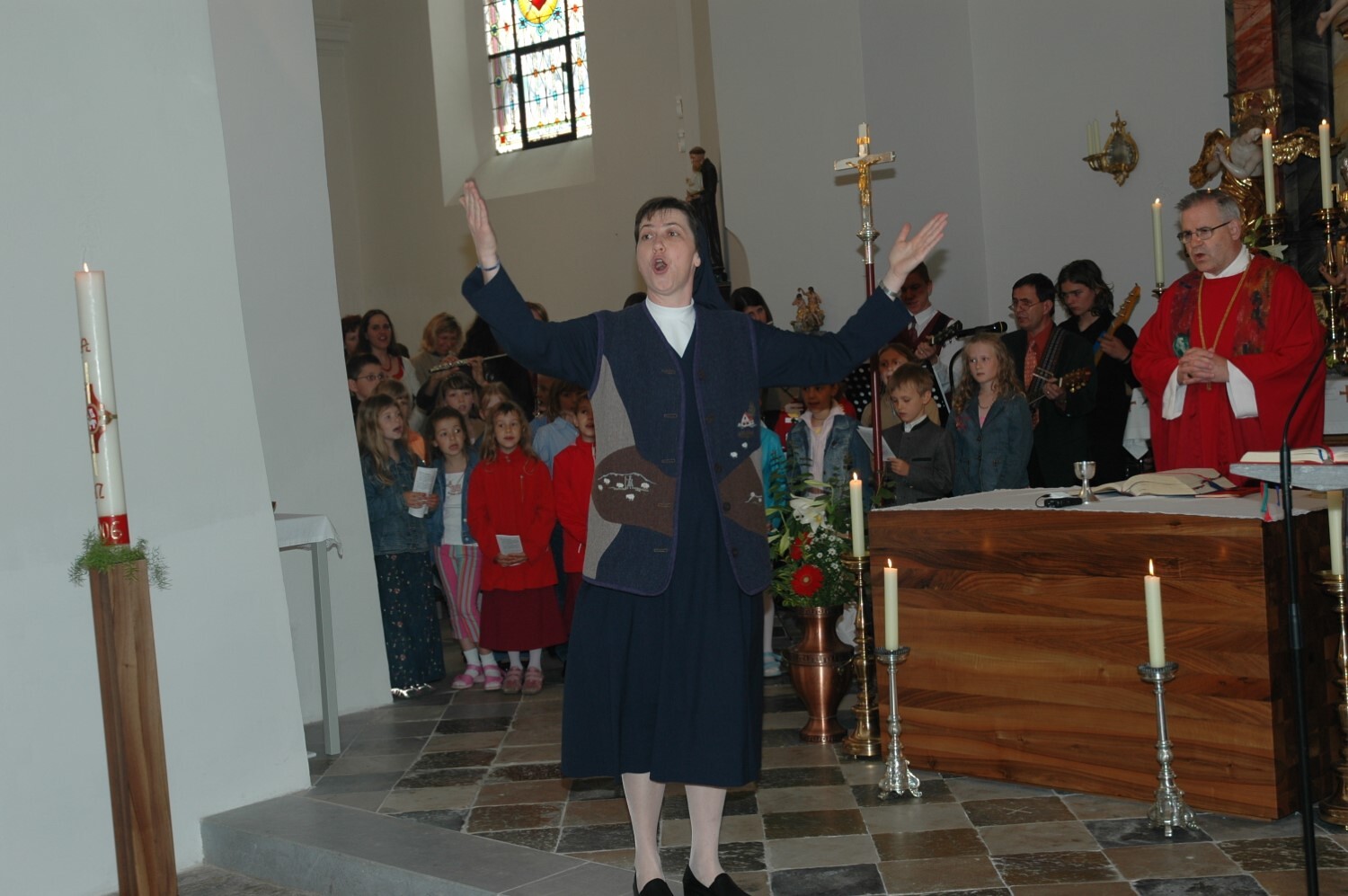 Sr. Maria leitet das kleine Ensemble, das den Pfarrseniorensonntag musikalisch umrahmt.