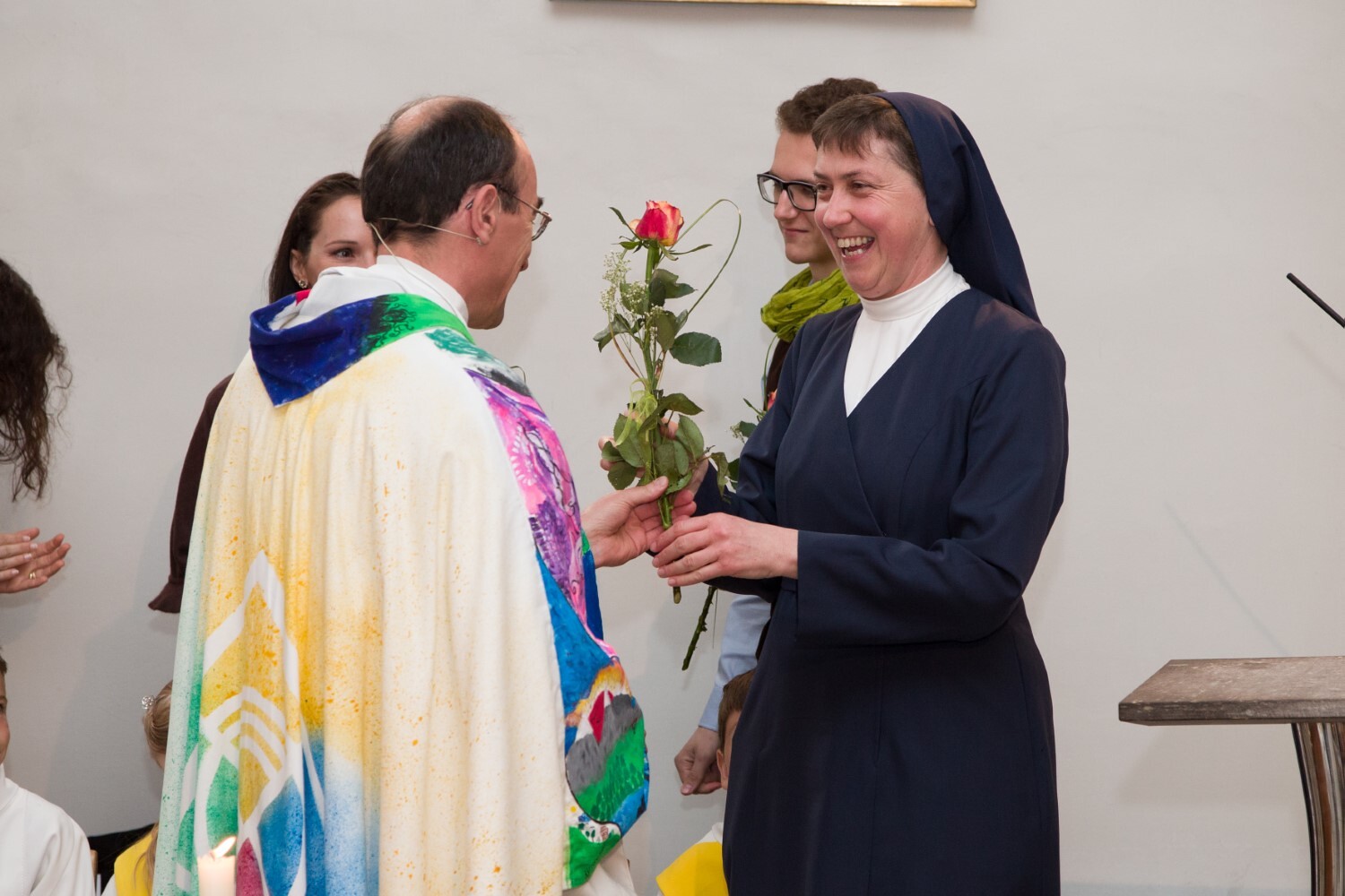Pater Paulus Kamper sendet Sr. Maria in den Seelsorgeraum Kaiserwald.