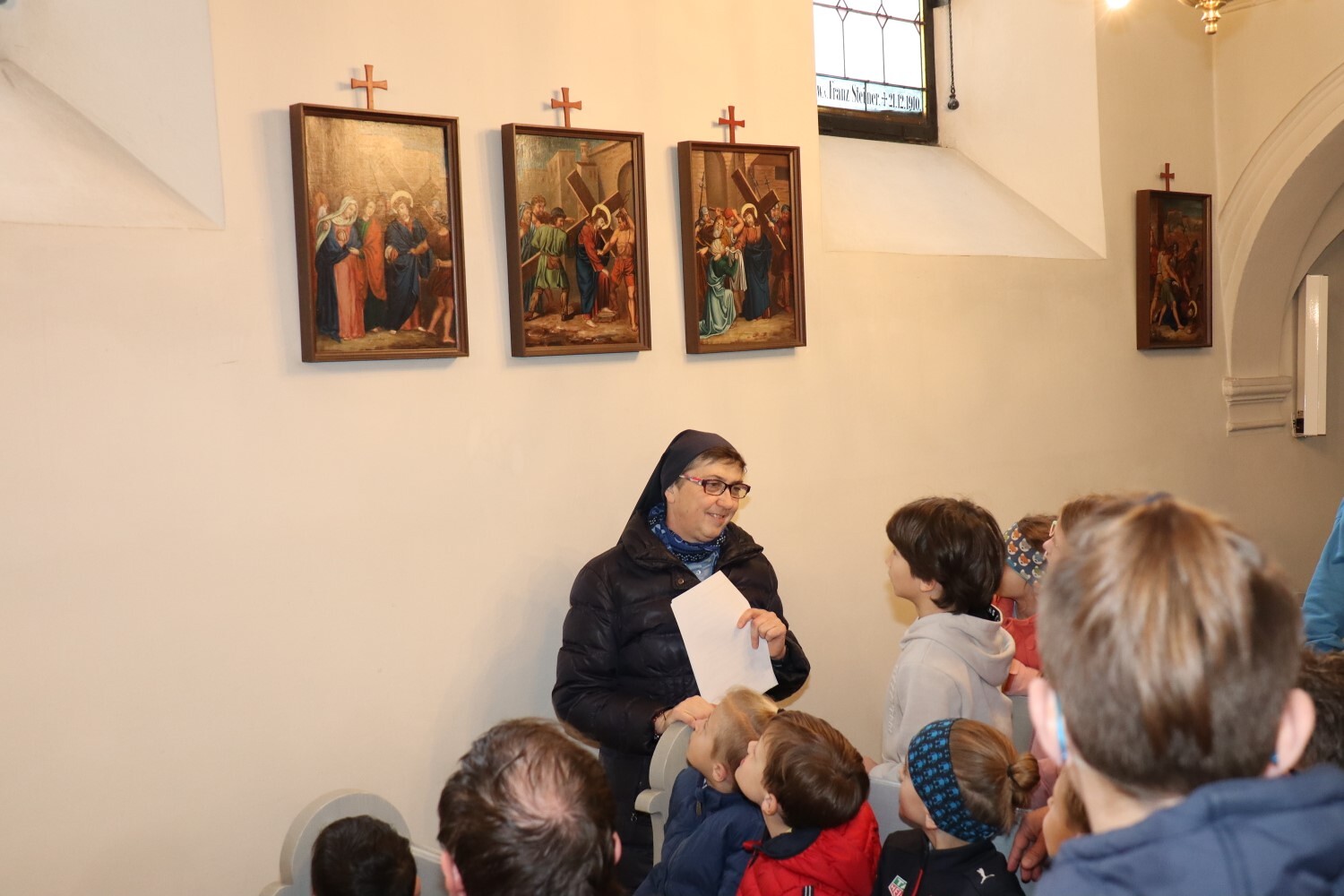 Sr. Maria begleitet die Kinder bei der ersten Wort-Gottes-Feier im österreichischen Fernsehen.