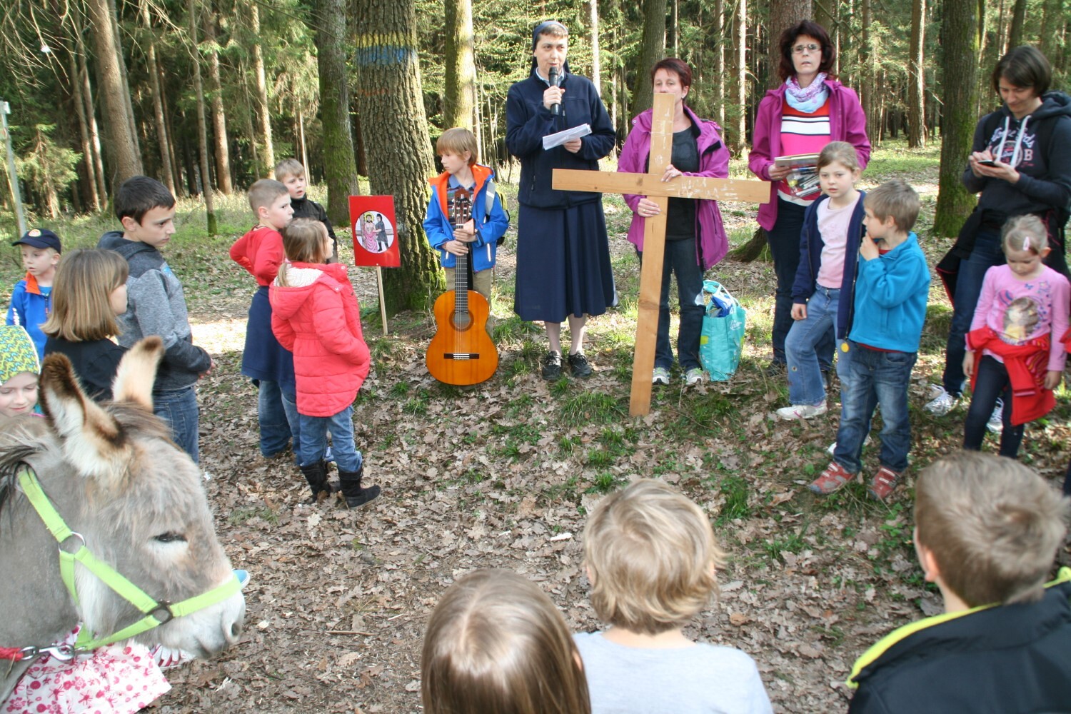 Sr. Maria geht mit den Firmlingen den Markusweg