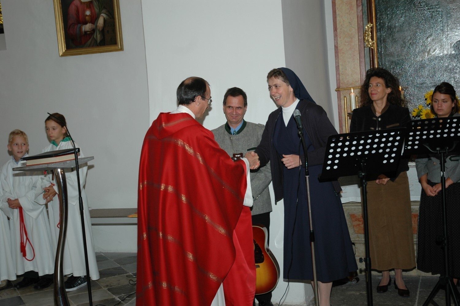 Pfarrer Johann Karner bedankt sich bei Sr. Maria