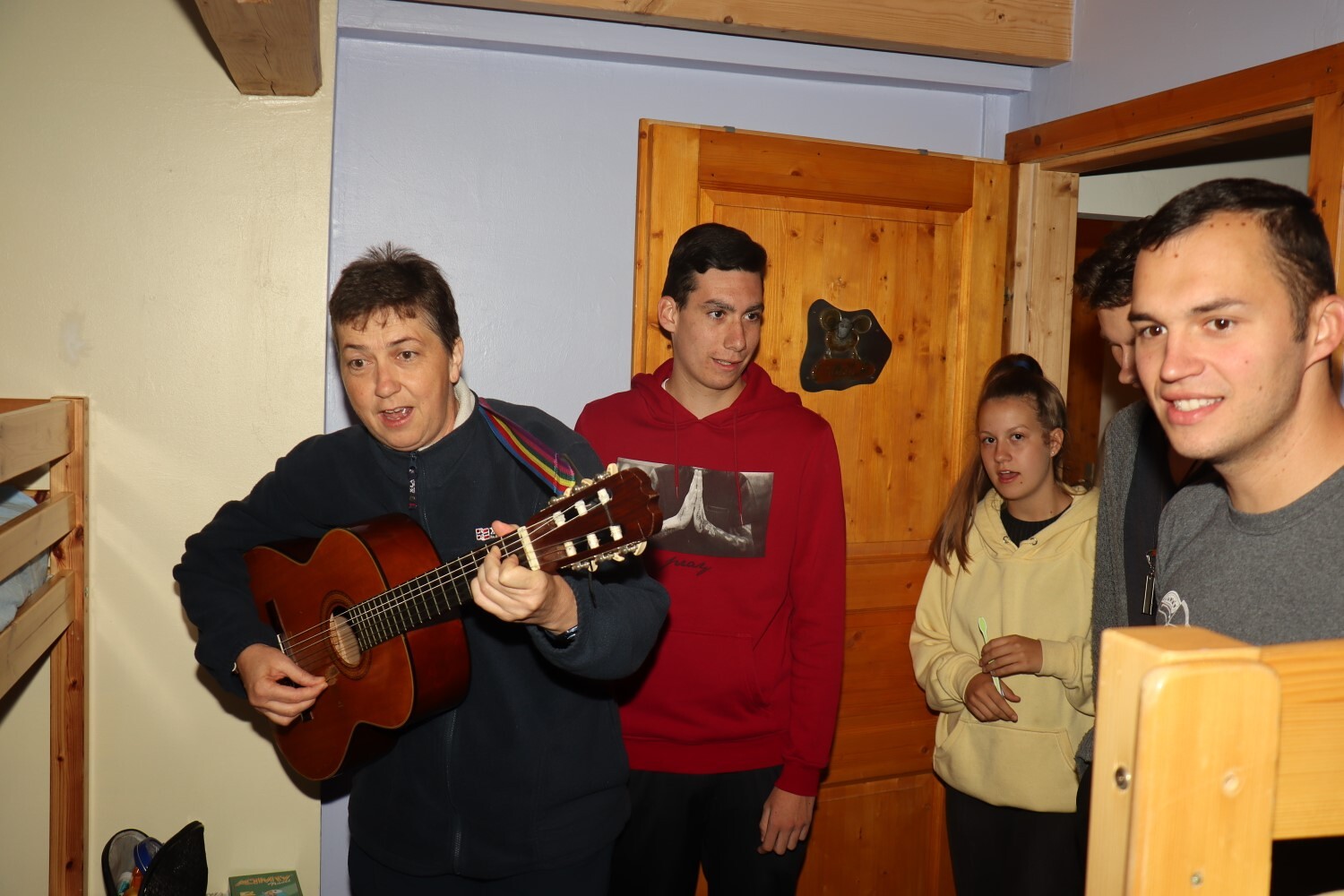 Die Jugendlichen feiern Sr. Marias Geburtstag bei einer winterlichen Wanderung