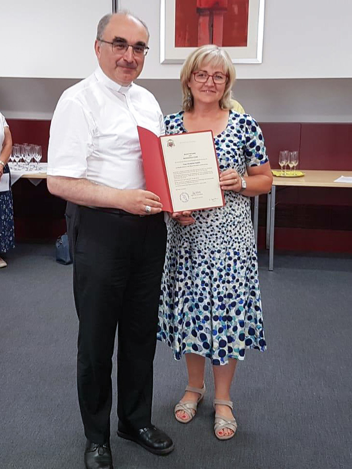 Sr. Maria Leopold hat diesen Ausbildungskurs mit sechs Modulen gemacht und ein Praktikum absolviert. Sie wurde am Freitag, den 14. Juni vom Bischof für die Pfarre gesendet und am Sonntag, den 16. Juni von Pfarrer Karner der Pfarrbevölkerung vorgestellt. Die Verantwortlichen der Diözese wünschen, dass die Begräbnisleiter ein liturgisches Kleid – eine weiße Albe – tragen.