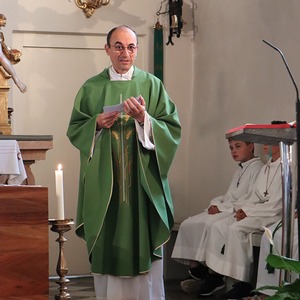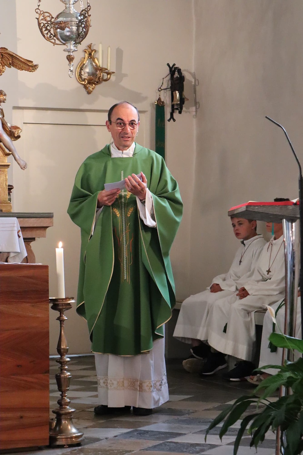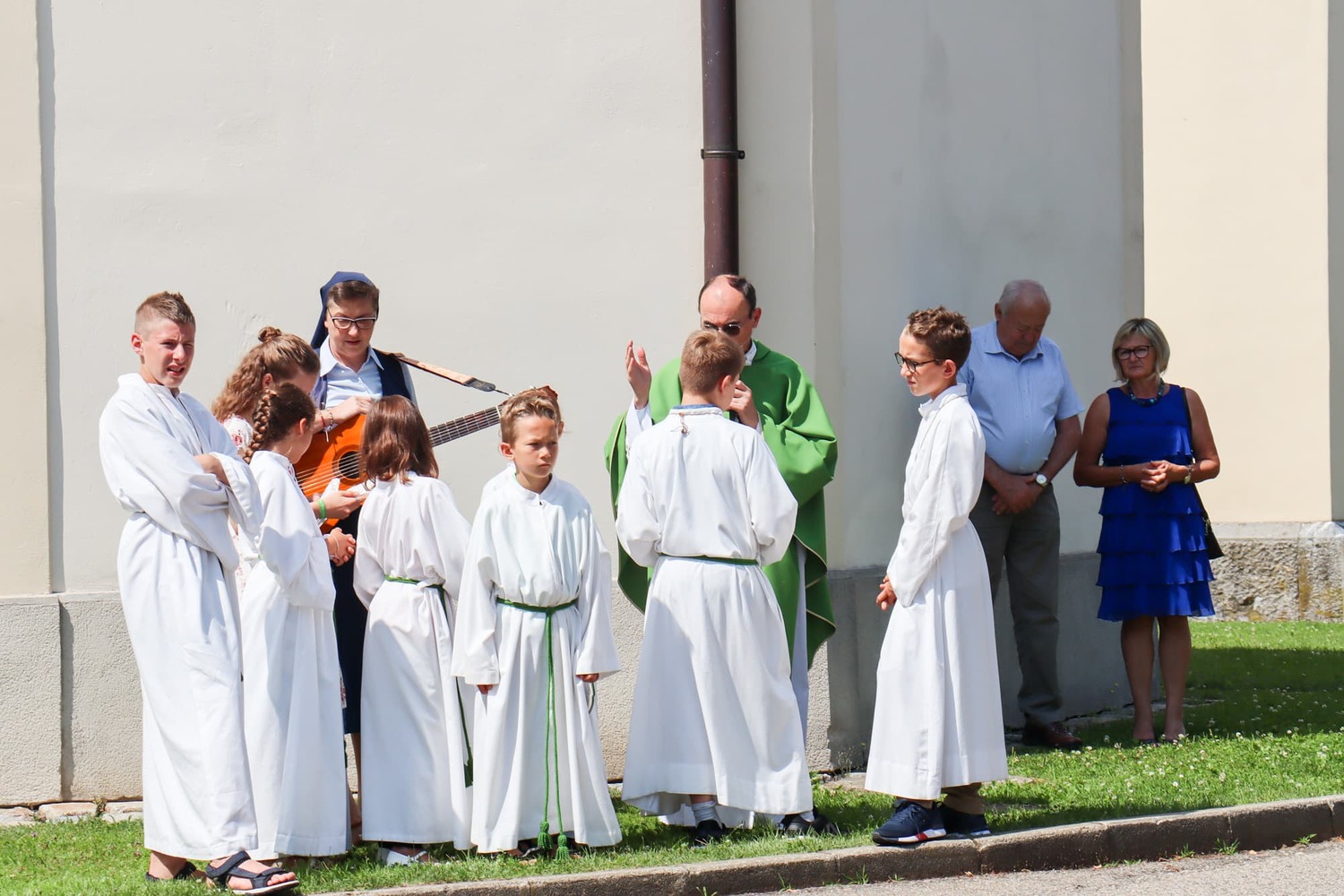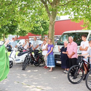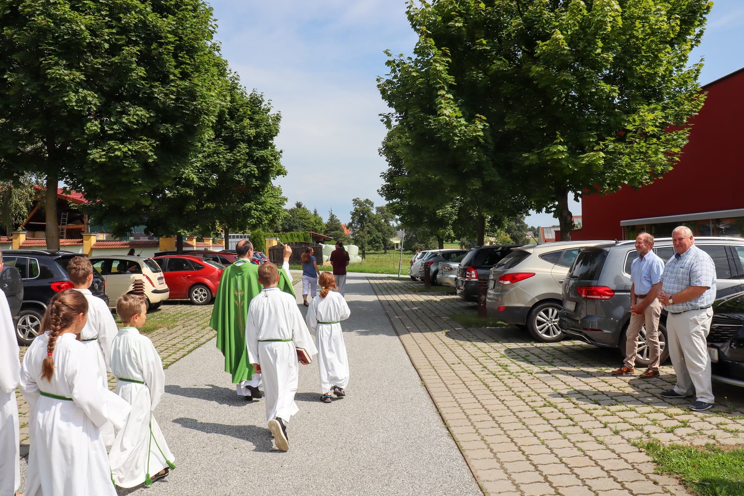 Stilgerecht fuhr Pfarrer Karner mit seinem E-Bike nach Dobl und parkte es neben einem Dreirad hinter der Kirche inmitten der Autos. Nach dem Gottesdienst wurde zur Fahrzeugsegnung eingeladen. Bei allem Fortschritt in der Fahrzeugtechnik begleitet uns im Verkehr doch die Unsicherheit vor unseren eigenen Fahrfehlern und dem Fehlverhalten der anderen Verkehrsteilnehmer. So meinte ein Fahrzeugbesitzer, der zur Segnung seines Autos gekommen war, die Verantwortung als Lenker ist heute fast zu schwer.