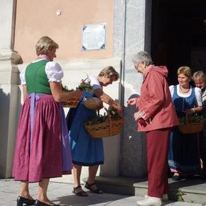 Pater Simon segnete die Kräuterbüscherln nach den heiligen Messen um 8 Uhr und 10 Uhr. Hernach wurden die Sträußchen von den Bäuerinnen an die Gottesdienstbesucher gegen eine kleine Spende verteilt. Der Spendenerlös kommt heuer dem Verein "Leib & Söl" für den Einbau eines Liftes zugute. Ein herzliches Vergelt`s Gott gebührt den edlen Spendern!
