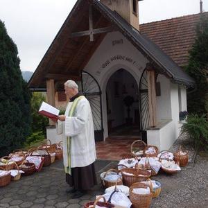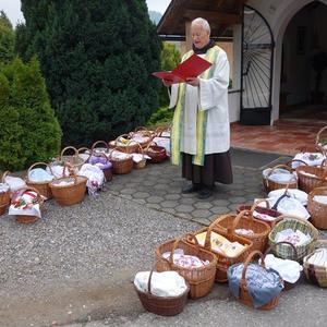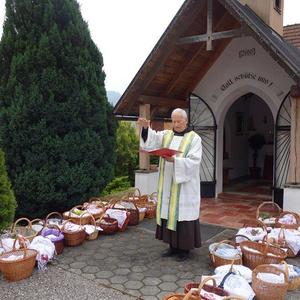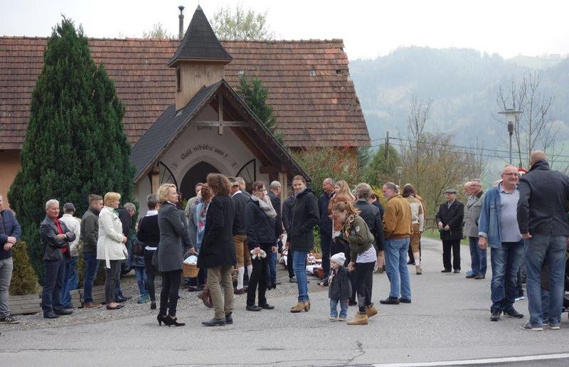 Osterspeisensegnung bei der Dorfkapelle in Schrauding am Karsamstag, dem 15. April 2017
