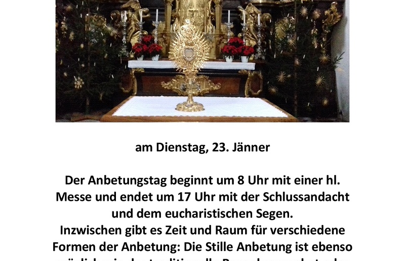 EINLADUNG ZUM ANBETUNGSTAG am Dienstag, 23. Jänner