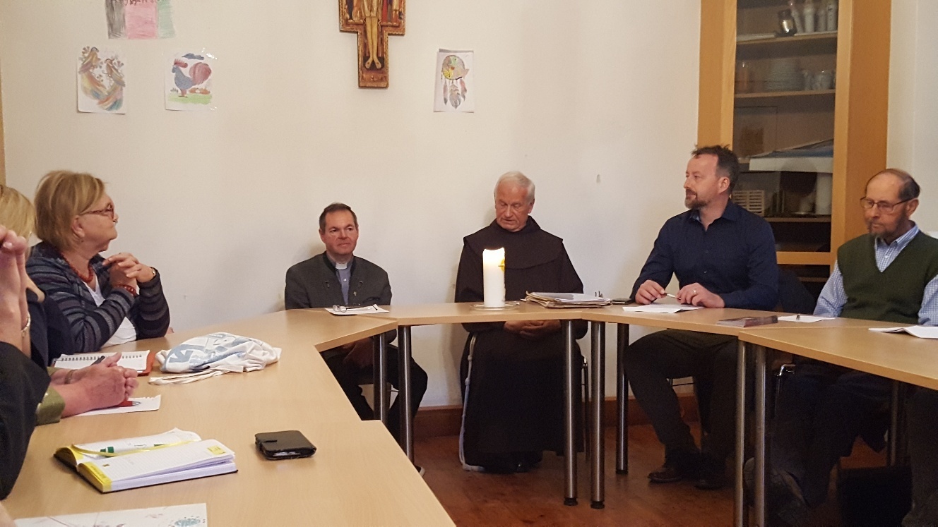 Pfarrer P. Simon, Pfarrgemeinderäte und einige amtliche und ehrenamtliche MitarbeiterInnen blieben fast zwei Stunden lang mit dem neuen Pfarrer in lebhaftem Gedankenaustausch. Besprochen wurden Pfarrarbeit und –leben und das, was uns wichtig ist, damit das christliche Leben in der Pfarre weiterhin gedeihen und sich der neuen Situation entsprechend entwickeln kann.